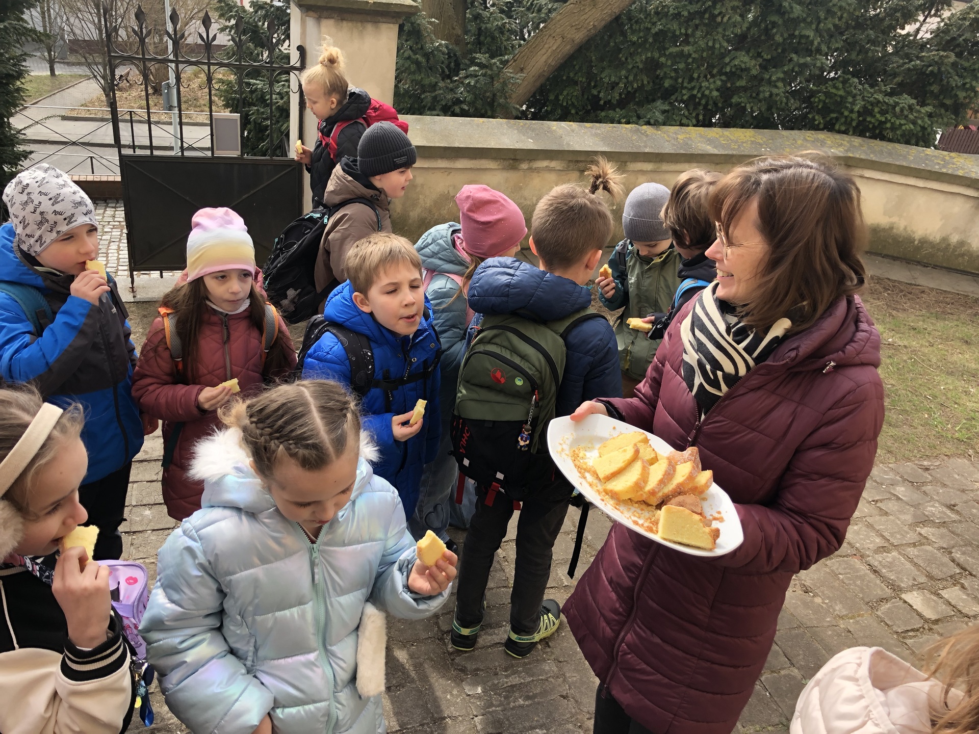 Předvelikonoční doba vyzývá k objevování minulosti. 2.A se seznámila zábavnou formou s křesťanským příběhem dávných let. Děti si odnesly omalovánky s příběhem a nakonec ochutnaly velikonočního beránka od paní Šárky Fričové.