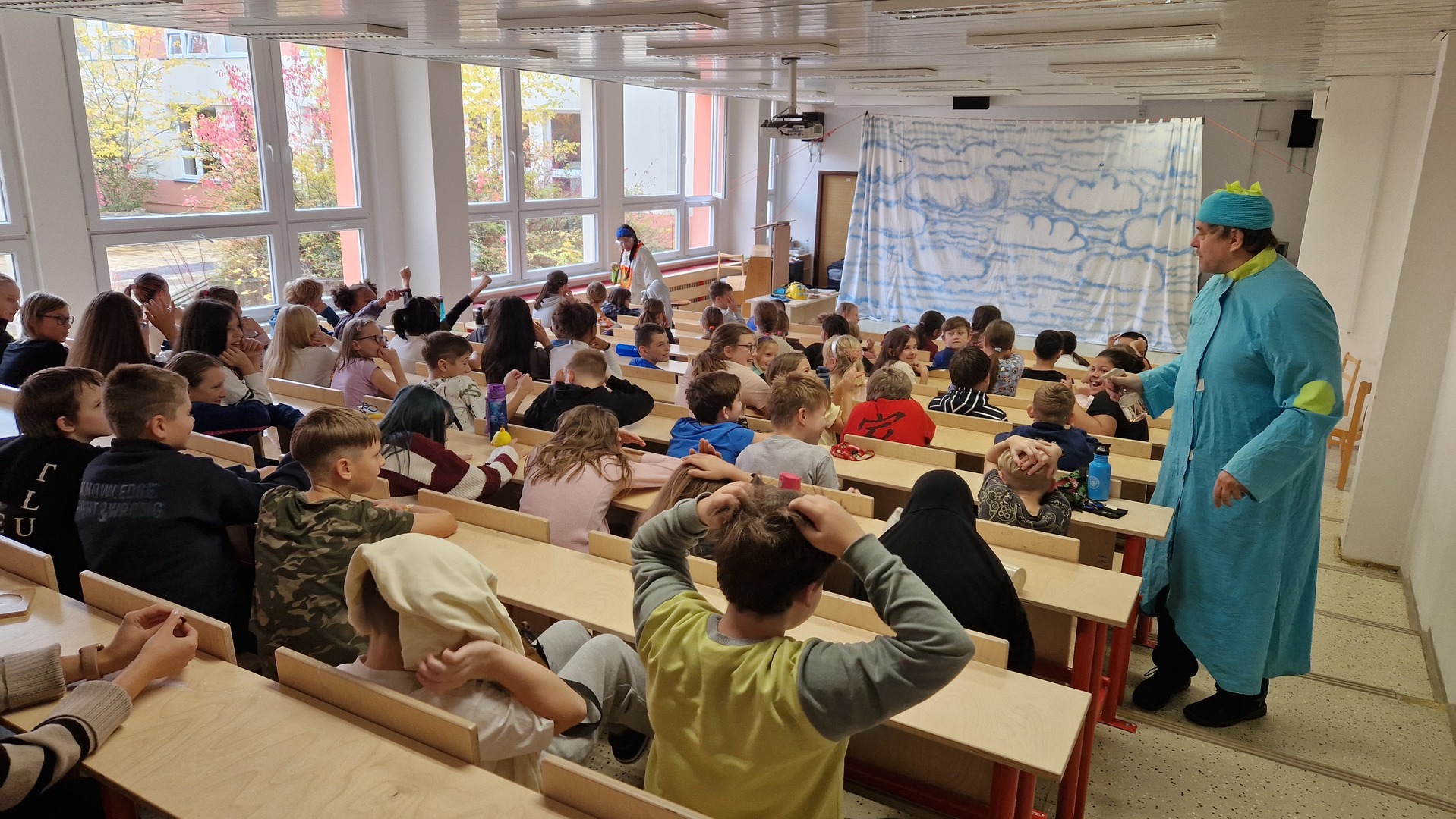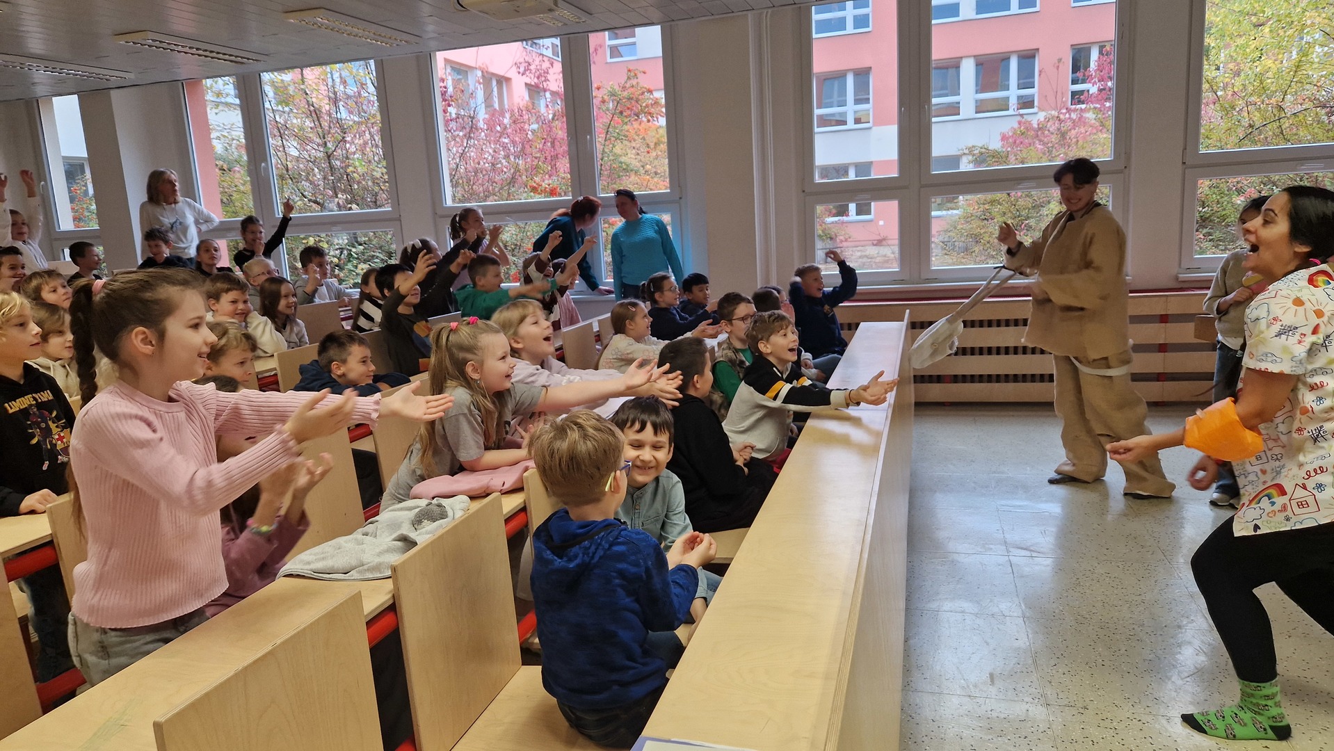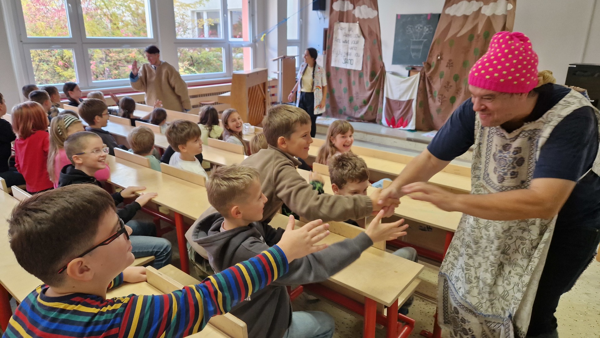 Představení byla interaktivní, některá plná písniček, jiná plná kouzel i zábavných situací. Na jevišti se objevili obři i mimozemšťané a děti se aktivně zapojovaly do děje. Nejenže si skvěle užily dopoledne plné humoru a fantazie, ale také si procvičily angličtinu v nových situacích a kontextech.