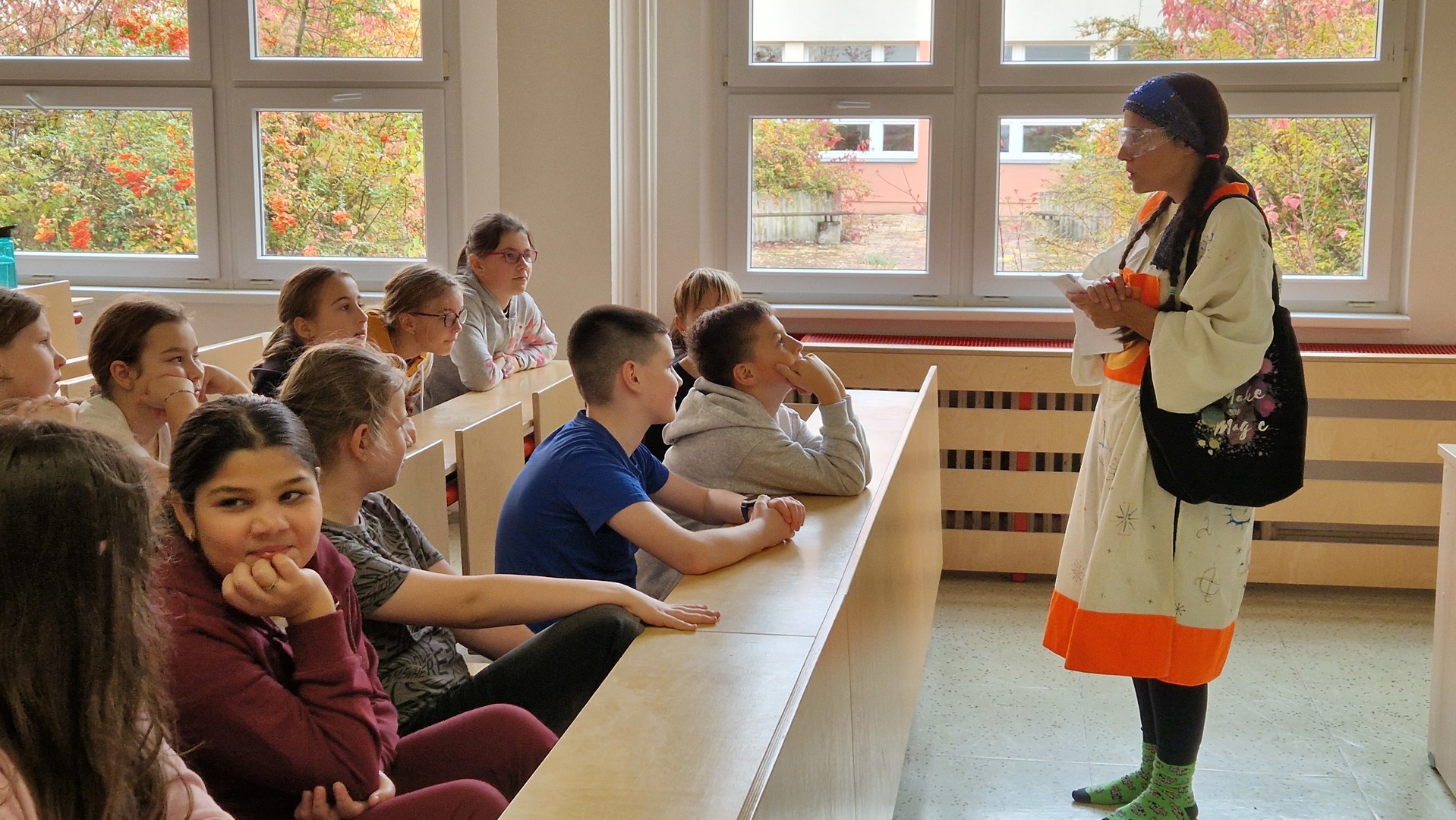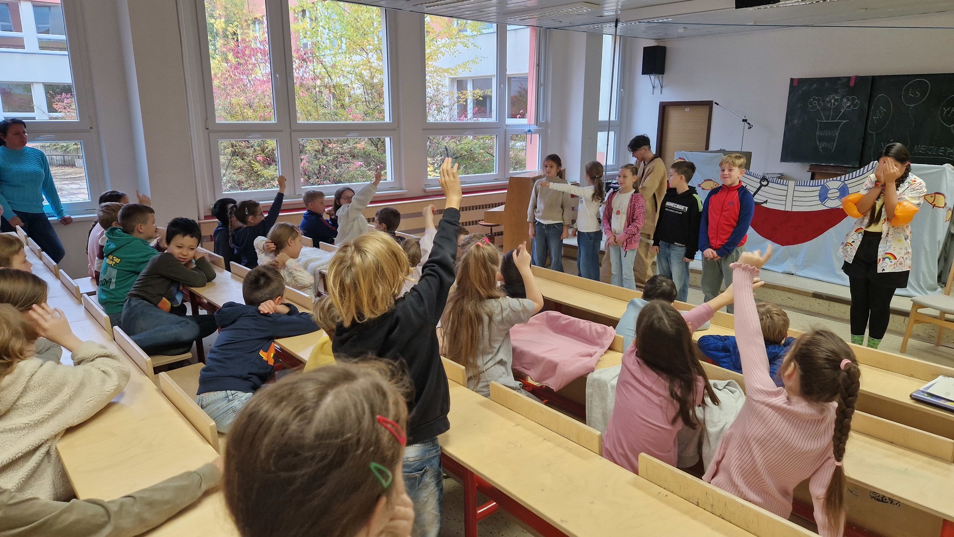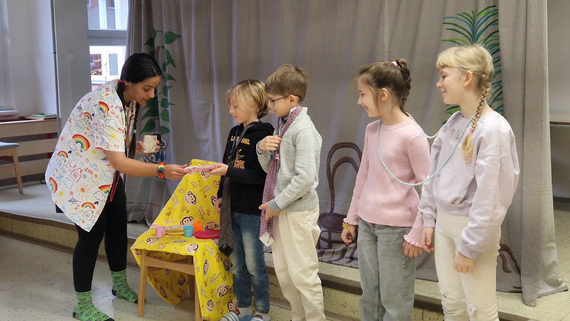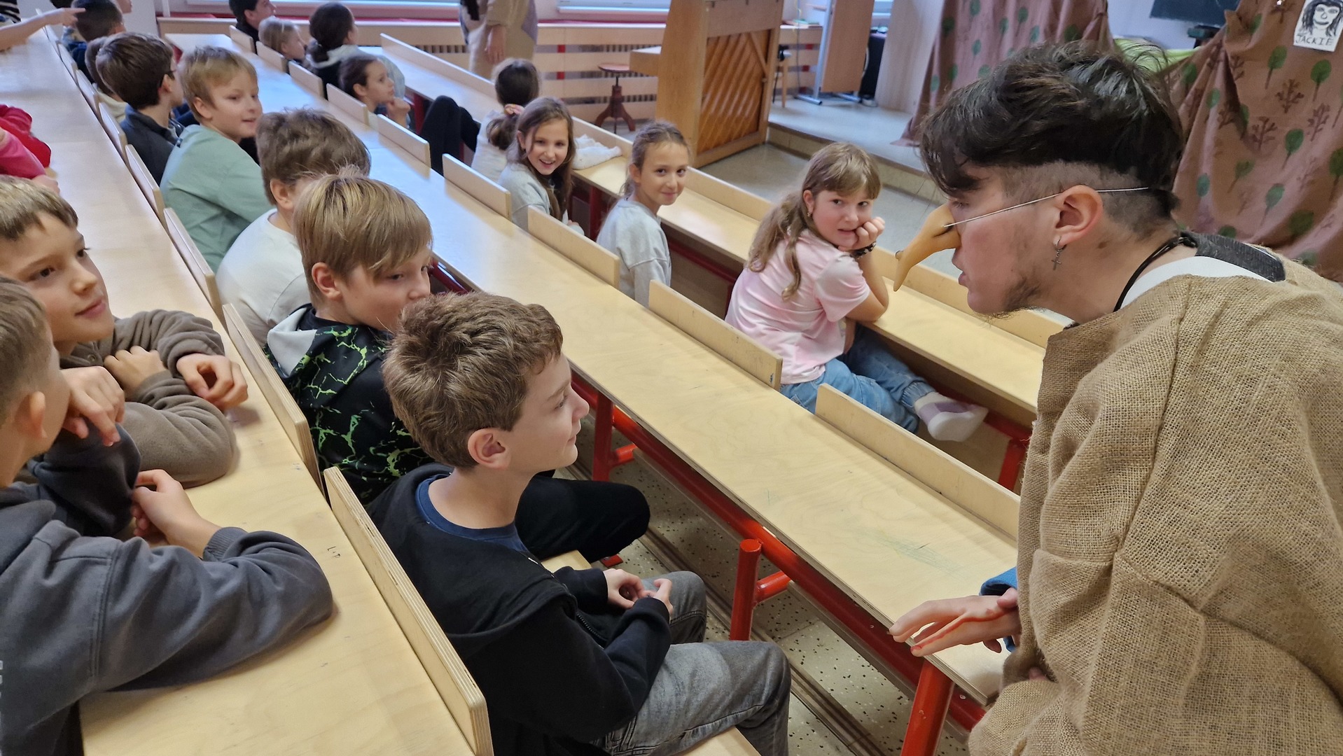 Představení byla interaktivní, některá plná písniček, jiná plná kouzel i zábavných situací. Na jevišti se objevili obři i mimozemšťané a děti se aktivně zapojovaly do děje. Nejenže si skvěle užily dopoledne plné humoru a fantazie, ale také si procvičily angličtinu v nových situacích a kontextech.