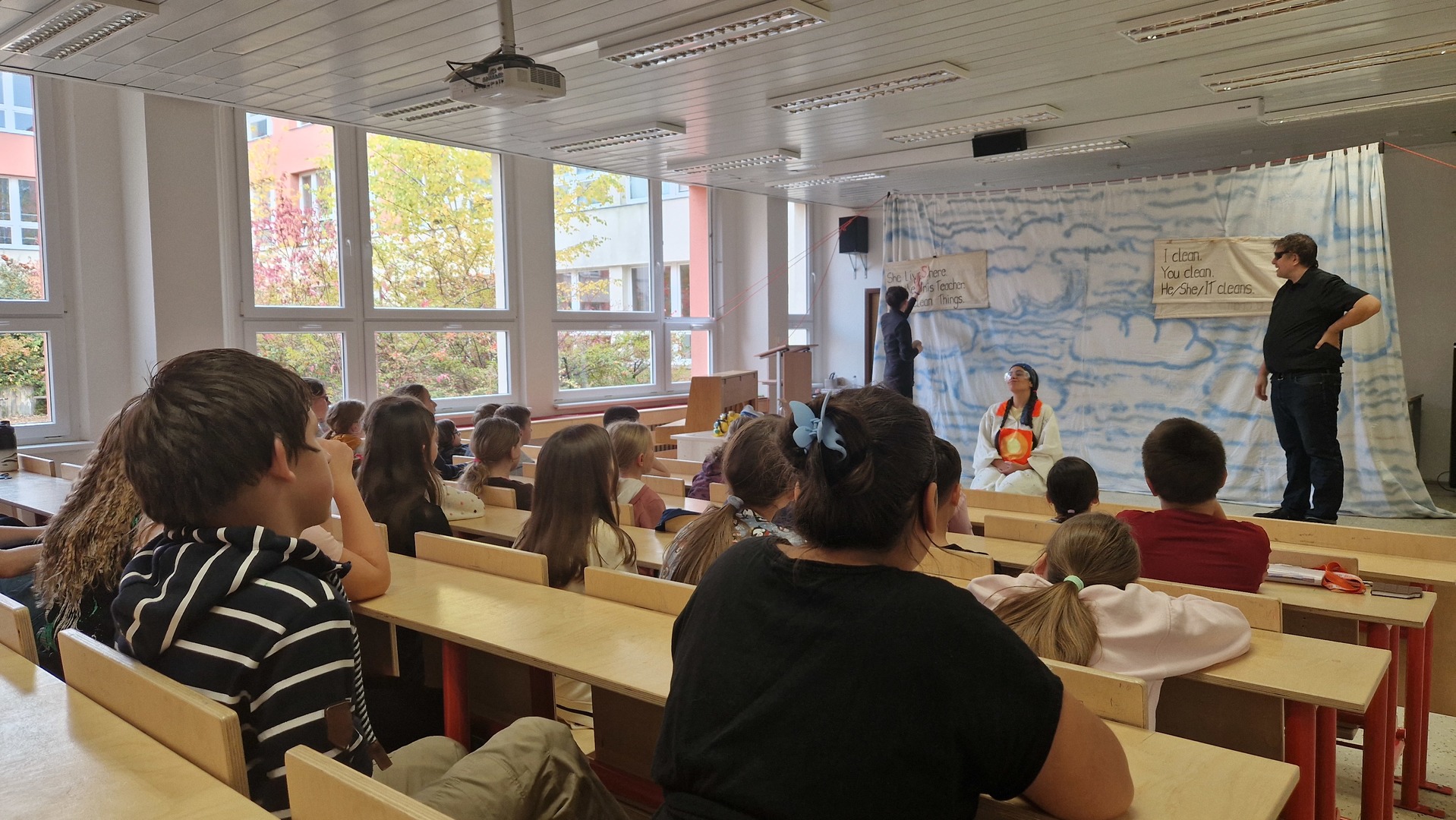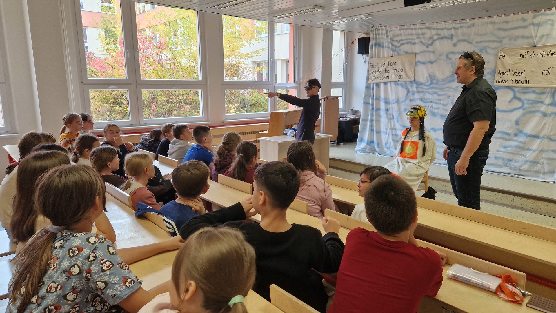 Do naší školy zavítalo anglické divadlo, které si pro děti připravilo hned tři představení – pro třeťáky, čtvrťáky i páťáky. A bylo se na co dívat!