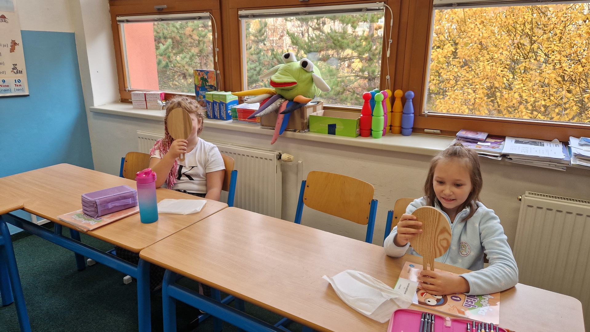 Proto jsme pořídili patnáct zrcátek, se kterými mohou žáci sledovat pohyby svých rtů, jazyka a čelistí. Díky tomu lépe vidí, jak správně tvořit jednotlivé hlásky – a učení se tak stává i zábavou.