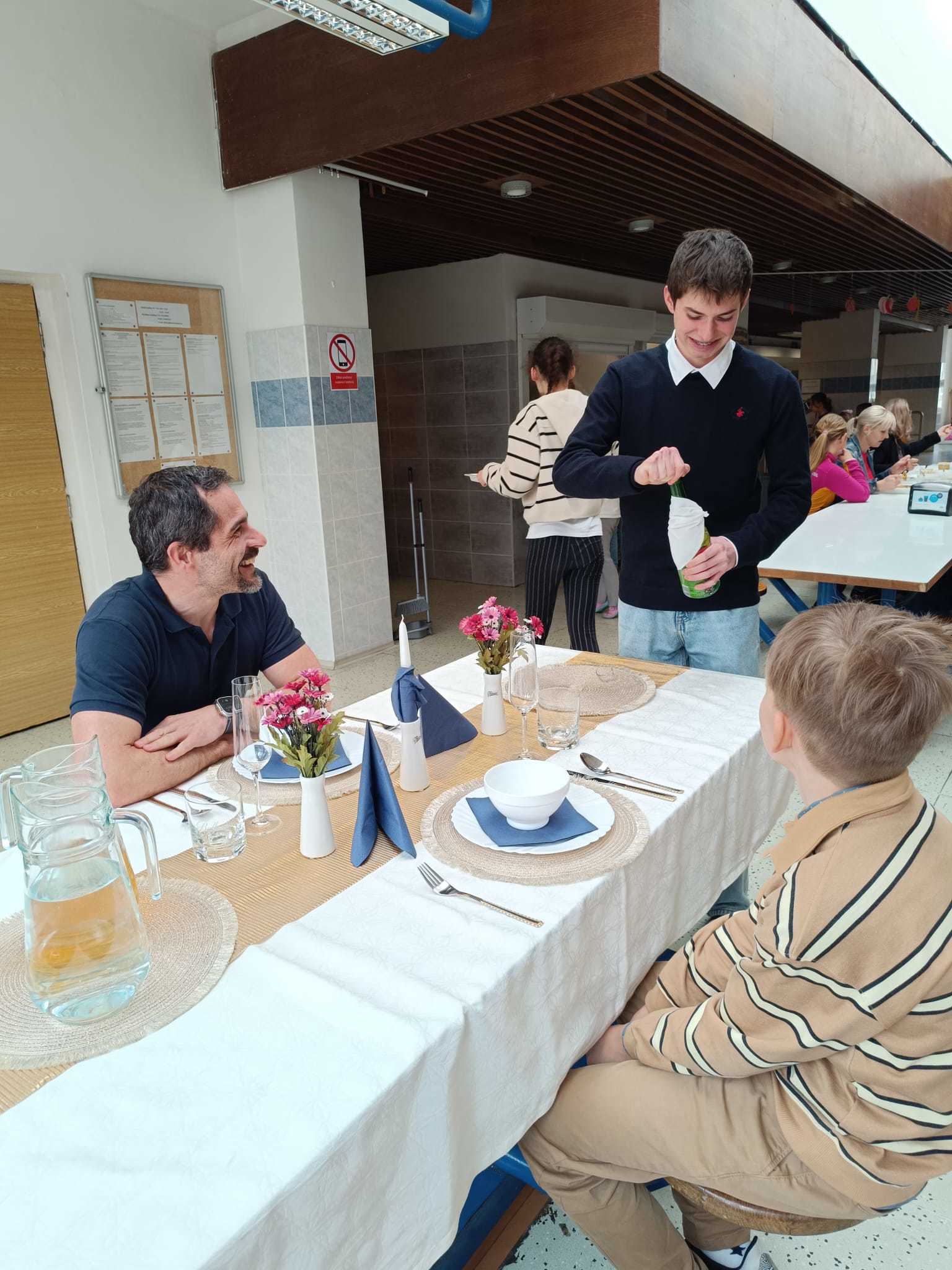 Strávil den s panem ředitelem opravdu naplno – od strategických her v kanceláři, kde ho dokonce porazil v šachu, až po společnou snídani, kterou si spolu užili hned na začátku dne. Nechyběl ani exkluzivní oběd se servisem ve školní jídelně.