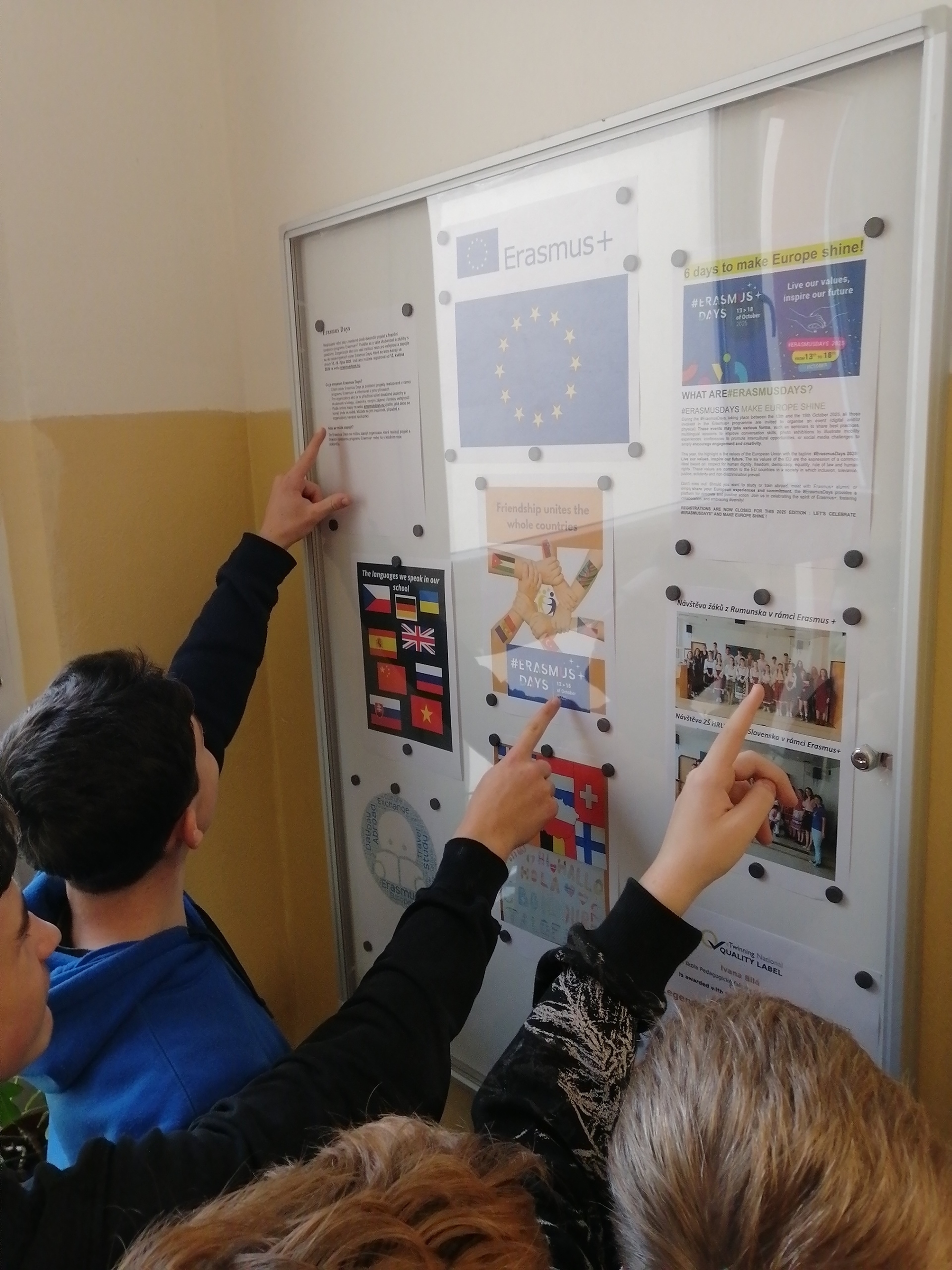 Žáci si během týdne užili pestrý program – tvořili tematické plakáty, word clouds, soutěžili v jazykových hrách, připravili nástěnku věnovanou Erasmus Days a zhlédli prezentaci a video, díky nimž se dozvěděli více o možnostech, které tento program nabízí. Aktivity měly za cíl rozvíjet jazykové dovednosti, podporovat mezinárodní spolupráci a ukázat, že učení může být zábavné a inspirativní. Naše škola už v minulosti přivítala v rámci programu Erasmus+ studenty ze Slovenska a Rumunska, s nimiž společně pracovali na projektech a navázali nová přátelství.