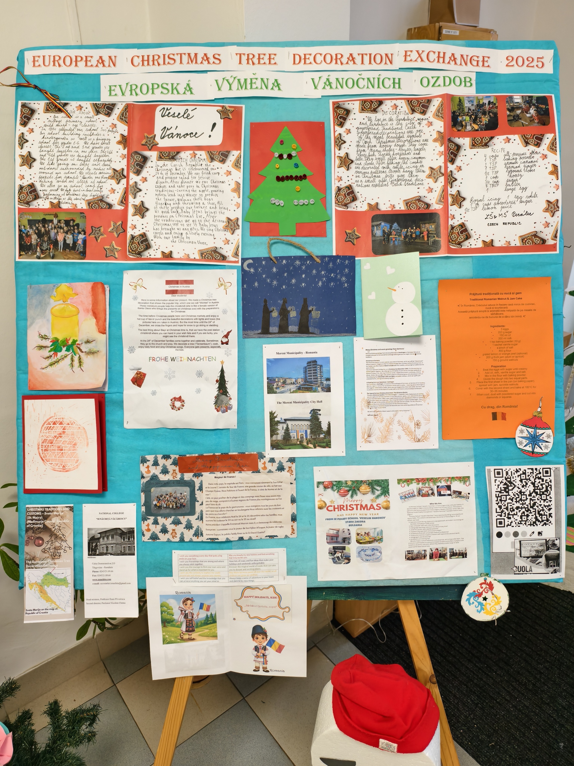 Tento projekt je úžasné dobrodružství, které spojuje školy napříč celou Evropou. Naše škola poslala 21 vánočních ozdob a přání, a stejně tak i k nám dorazily krásné ozdoby, přání a dopisy z různých zemí. Díky tomu vznikl nádherný vánoční strom, na kterém visí ozdoby z Řecka, Itálie, Německa, Španělska, Rumunska, Rakouska, Bulharska, Chorvatska, Maďarska, Francie a také z České republiky.
