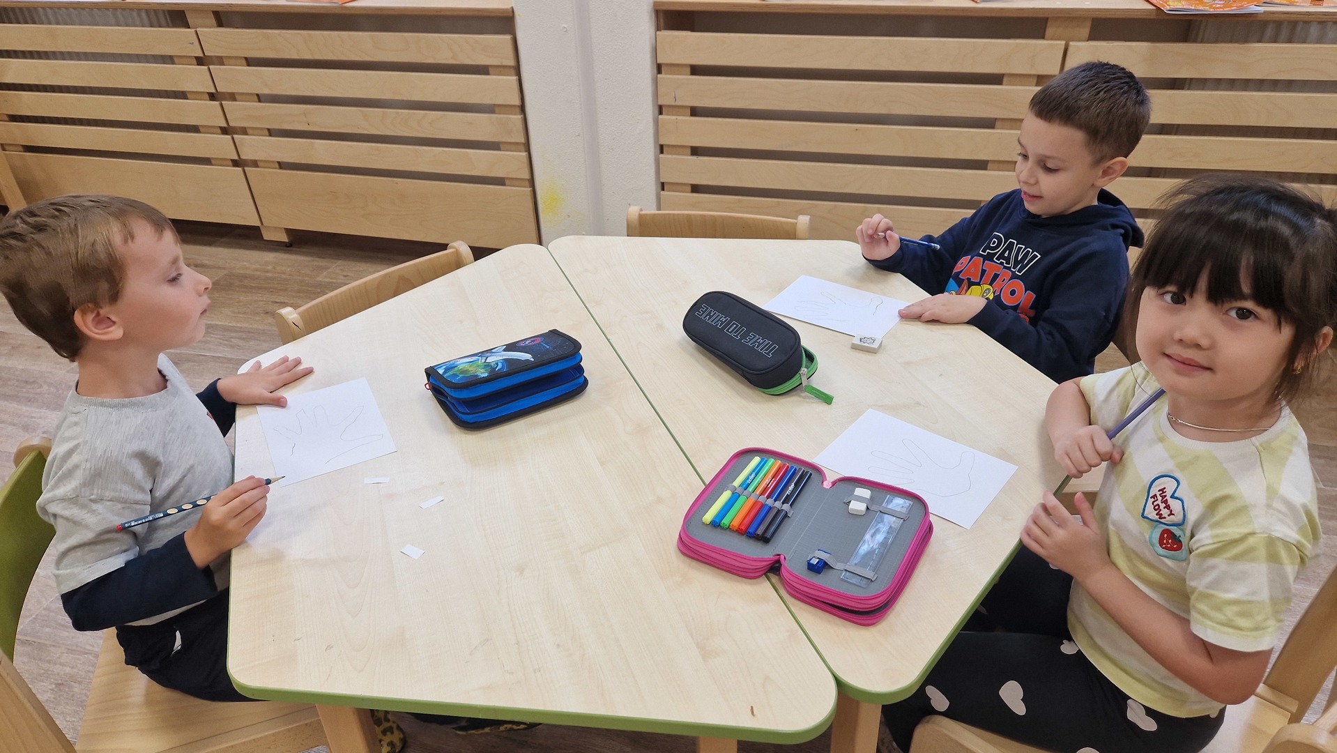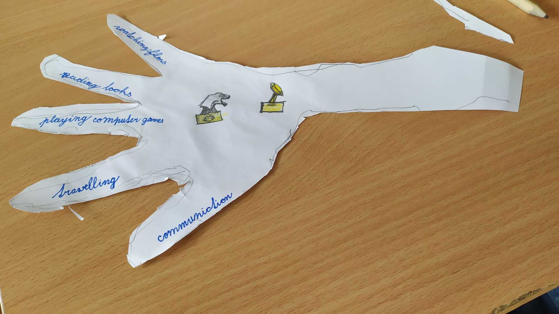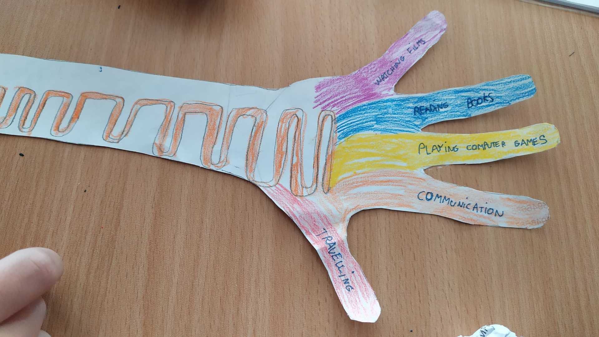 Nejmladší žáci kreslili na svoji papírovou ruku, proč se právě oni chtějí učit další jazyky. Jaké jsou jejich motivace, se můžete podívat na fotografiích. A proč jsme kreslili do tvaru ruky? Ruka je pro nás symbolem toho, že při učení jazyků nejsme sami. Můžeme si s kamarády plácnout, podat si pomocnou ruku, a vytvořit tak přátelský kolektiv, ve kterém se nám jistě bude dobře učit.