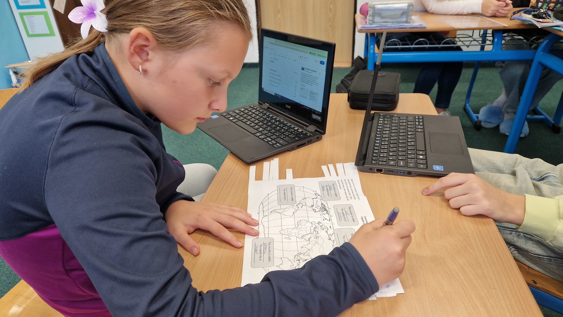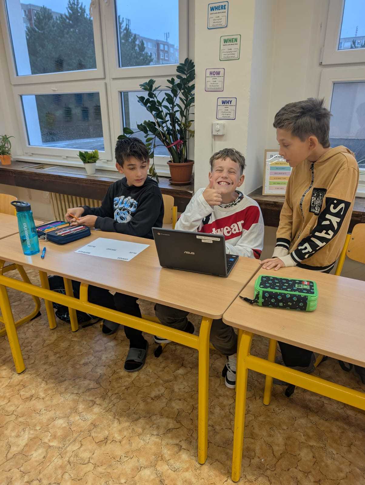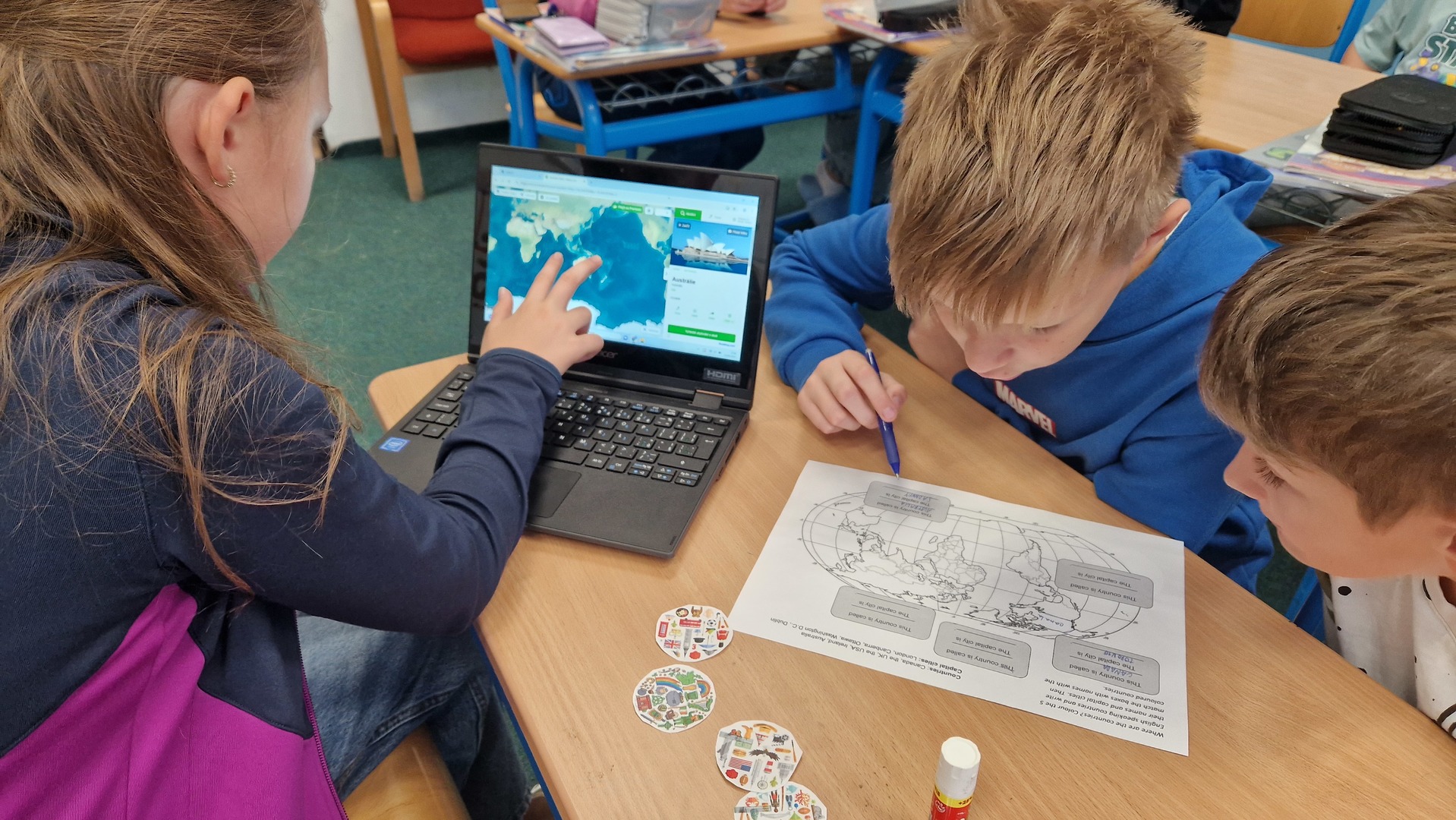 Také páťáci pracovali s chromebooky, když ve skupinách plnili úkoly k vybraným anglicky mluvícím zemím. Ty zakreslovali do mapy, zjišťovali hlavní města a přiřazovali k nim vybrané reálie. Nabyté vědomosti pak prezentovali před třídou.