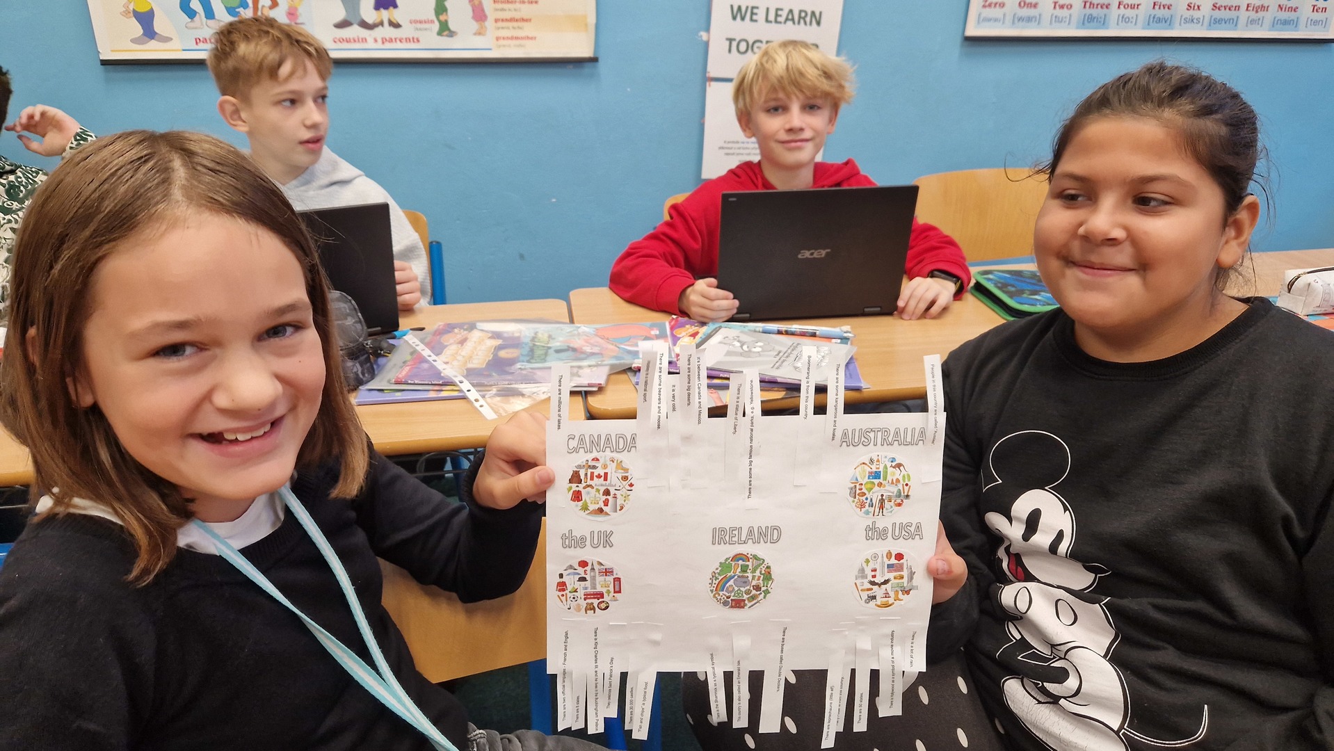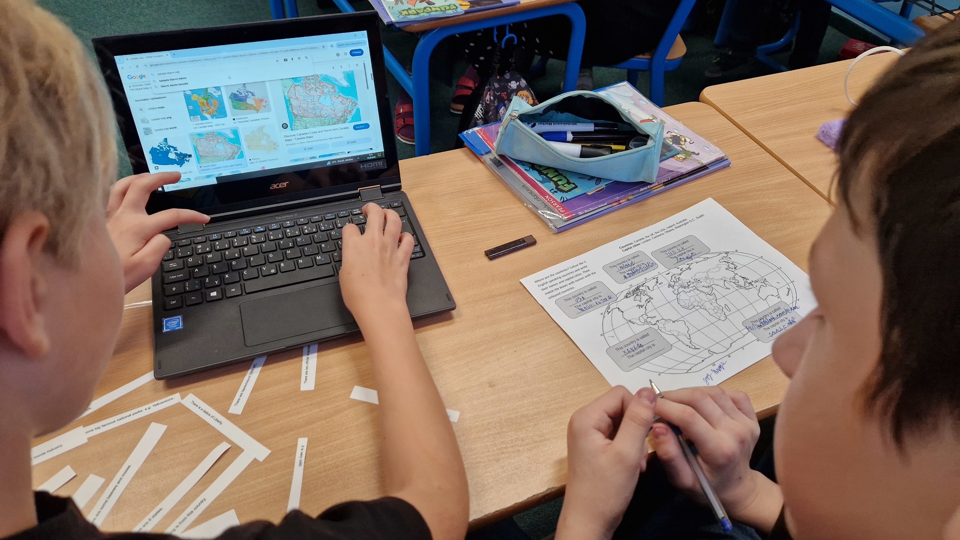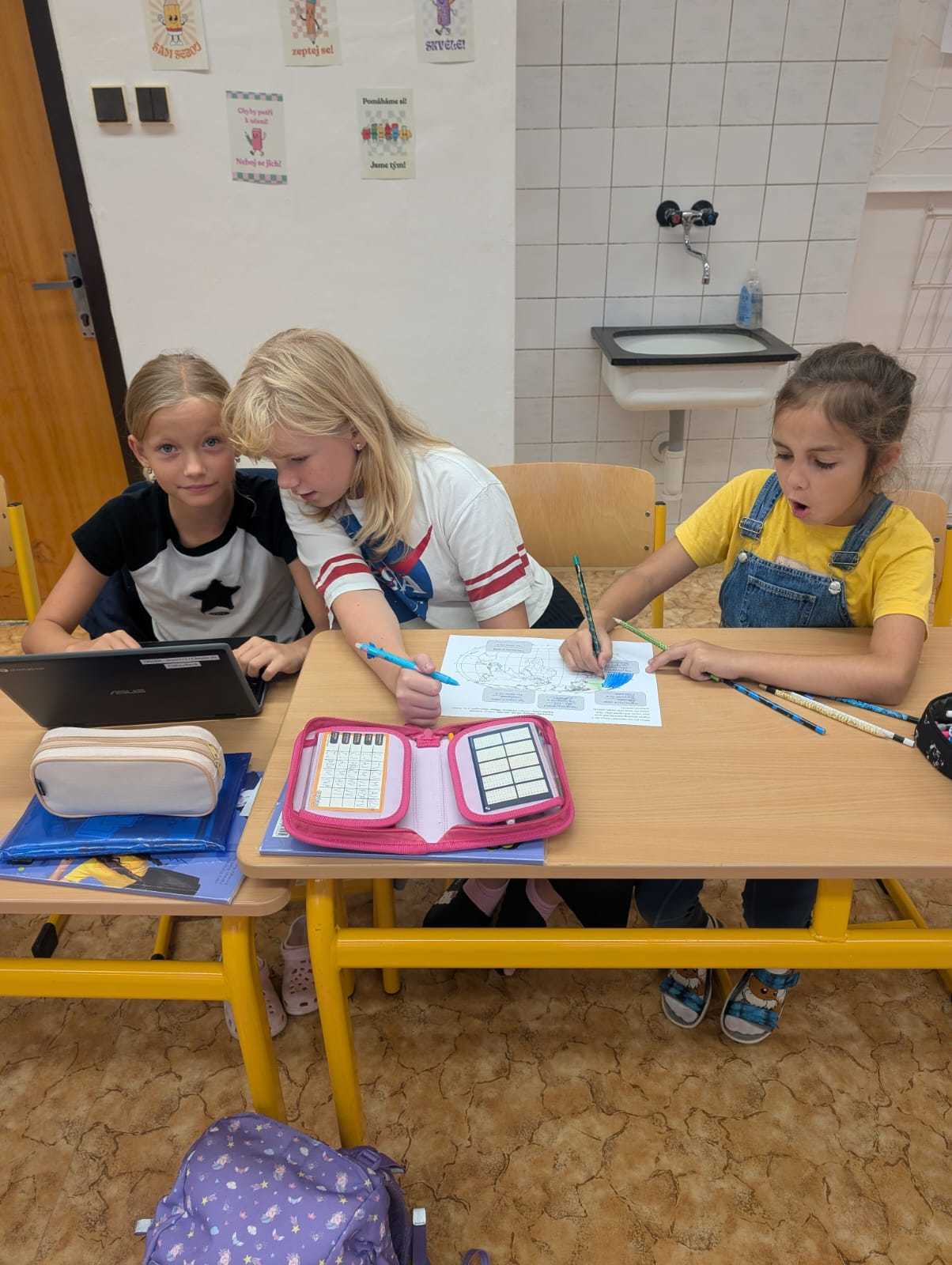 Také páťáci pracovali s chromebooky, když ve skupinách plnili úkoly k vybraným anglicky mluvícím zemím. Ty zakreslovali do mapy, zjišťovali hlavní města a přiřazovali k nim vybrané reálie. Nabyté vědomosti pak prezentovali před třídou.