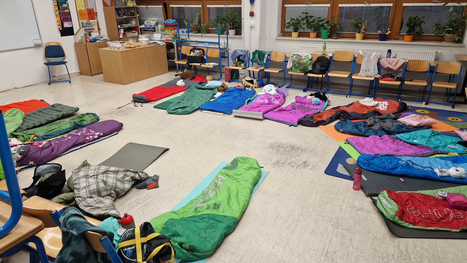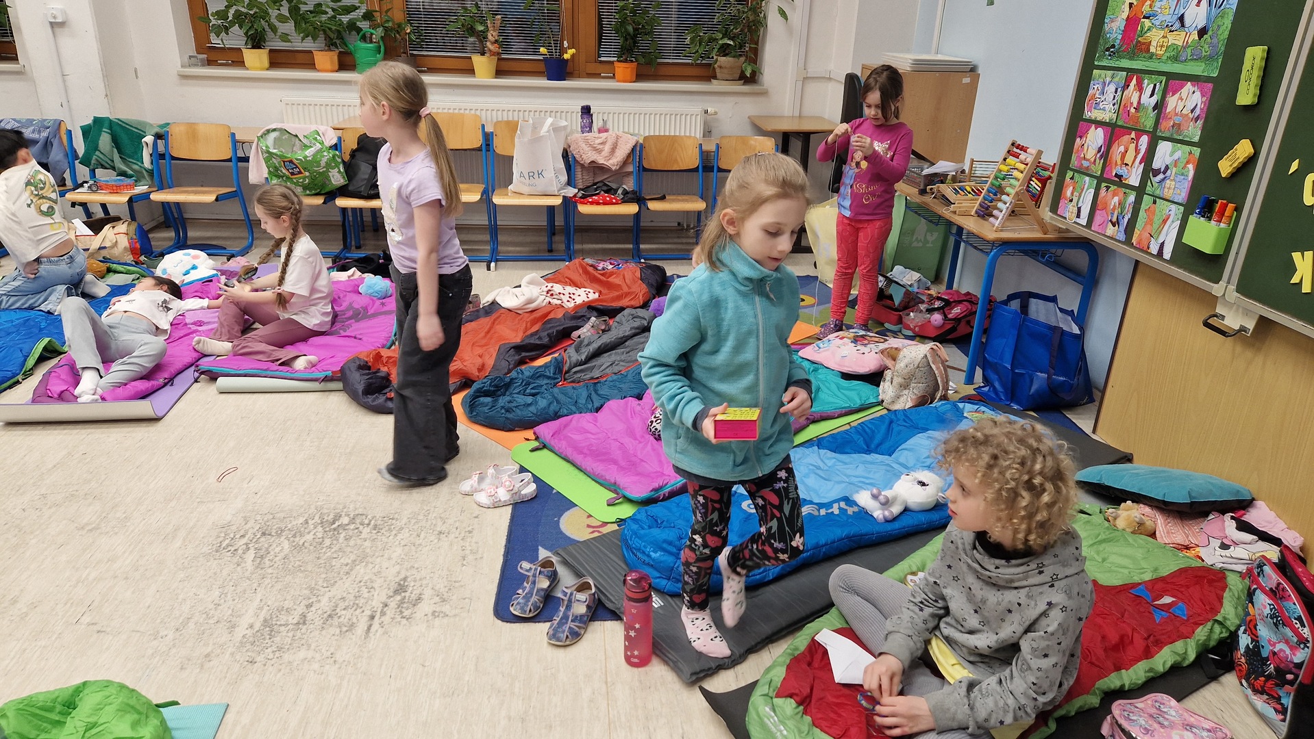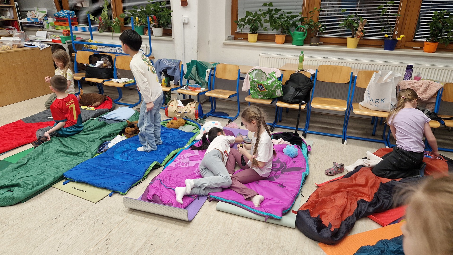 I letos si naši žáci mohou užít Noc s Andersenem. Netradiční zkušenost, kdy vymění lavice za karimatky a spacáky a po školních chodbách si za světla baterky mohou projít pohádkovou stezku. Zpívaly se písničky, kopalo se míčem do brány, hrály se stolní hry, poznávali jsme různé druhy ořechů, proplétali jsme se "lasery" a skládali papírové čepice.