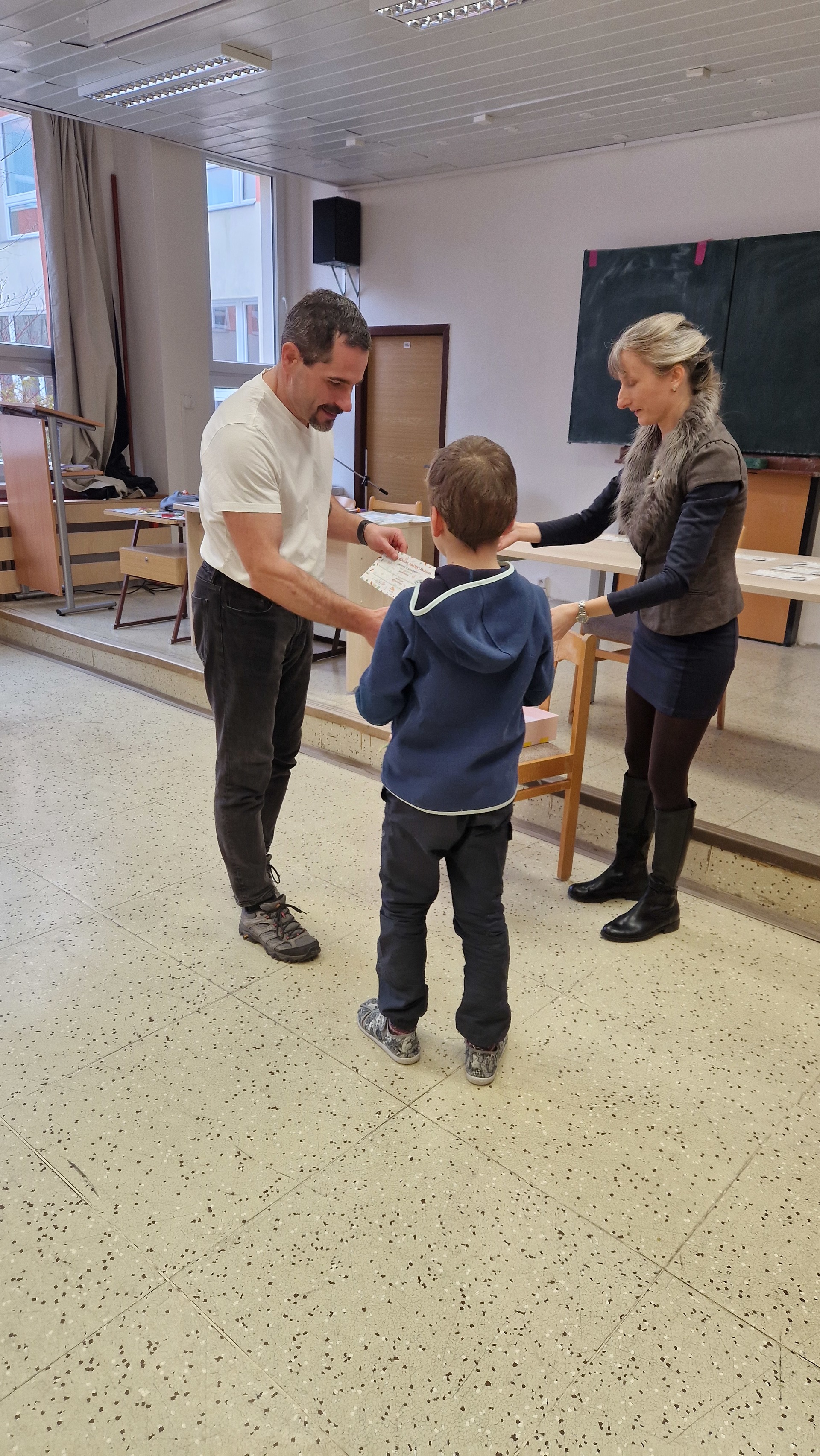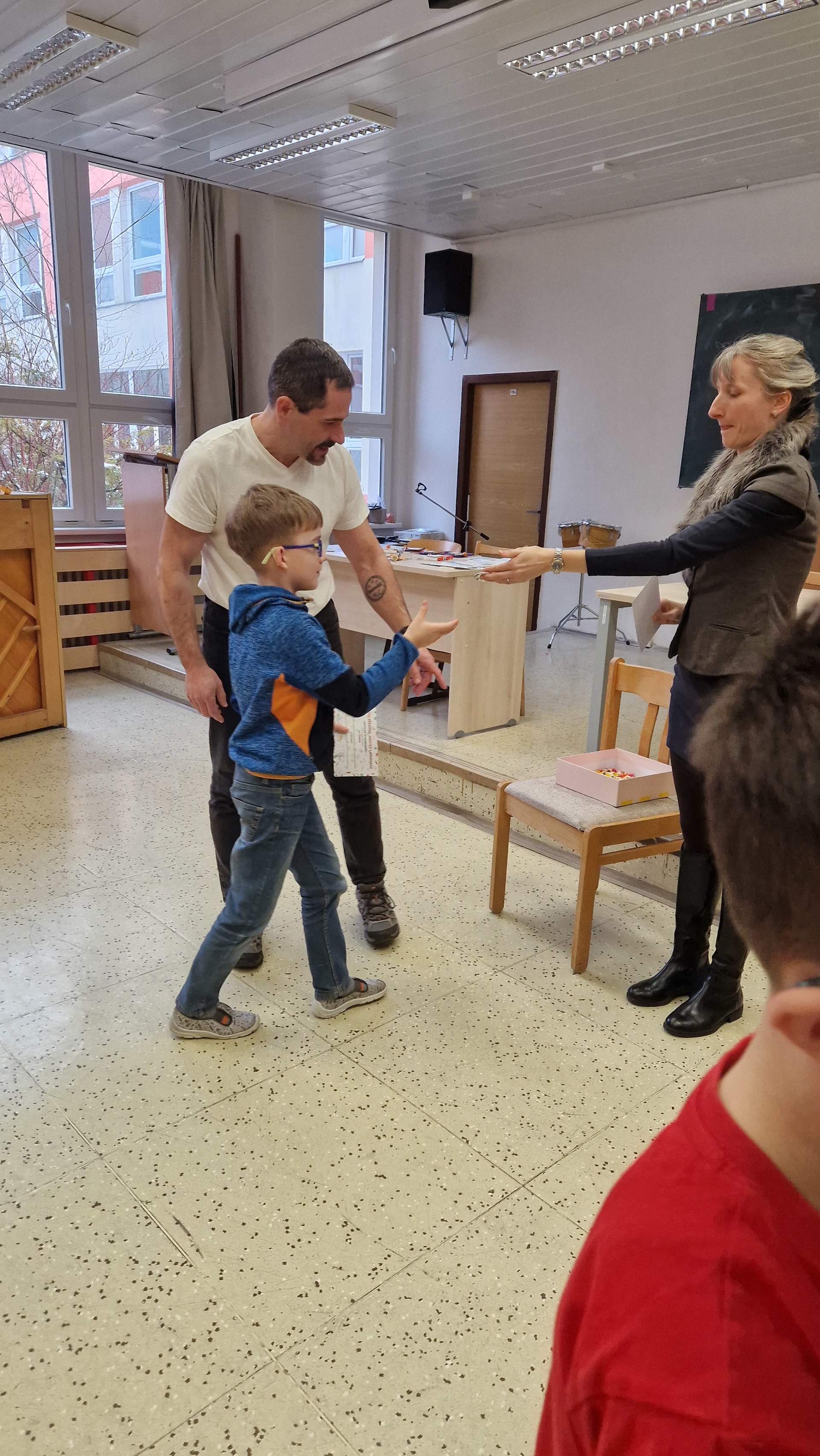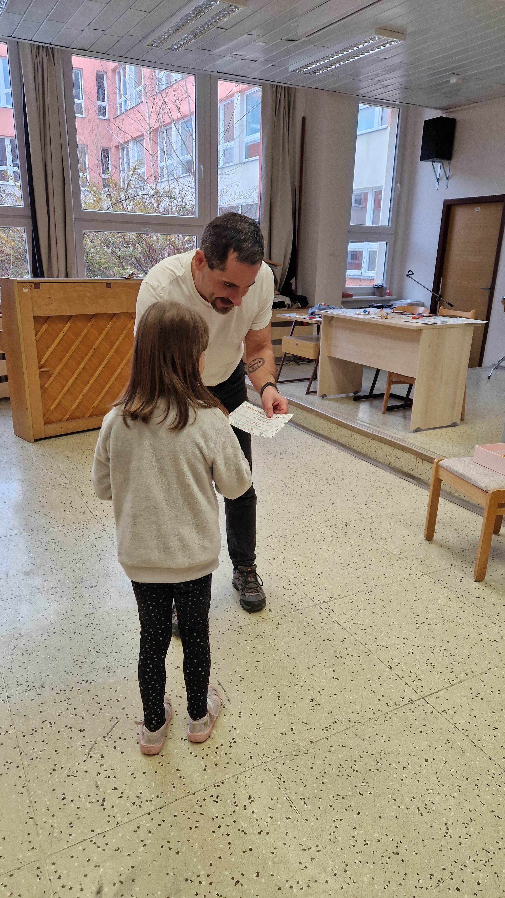 Ke čtenářským úspěchům přišel tentokrát malým i velkým čtenářům pogratulovat pan ředitel. Ocenil jejich čtenářské nadšení a motivoval k dalším radostným chvilkám s knihou v ruce.