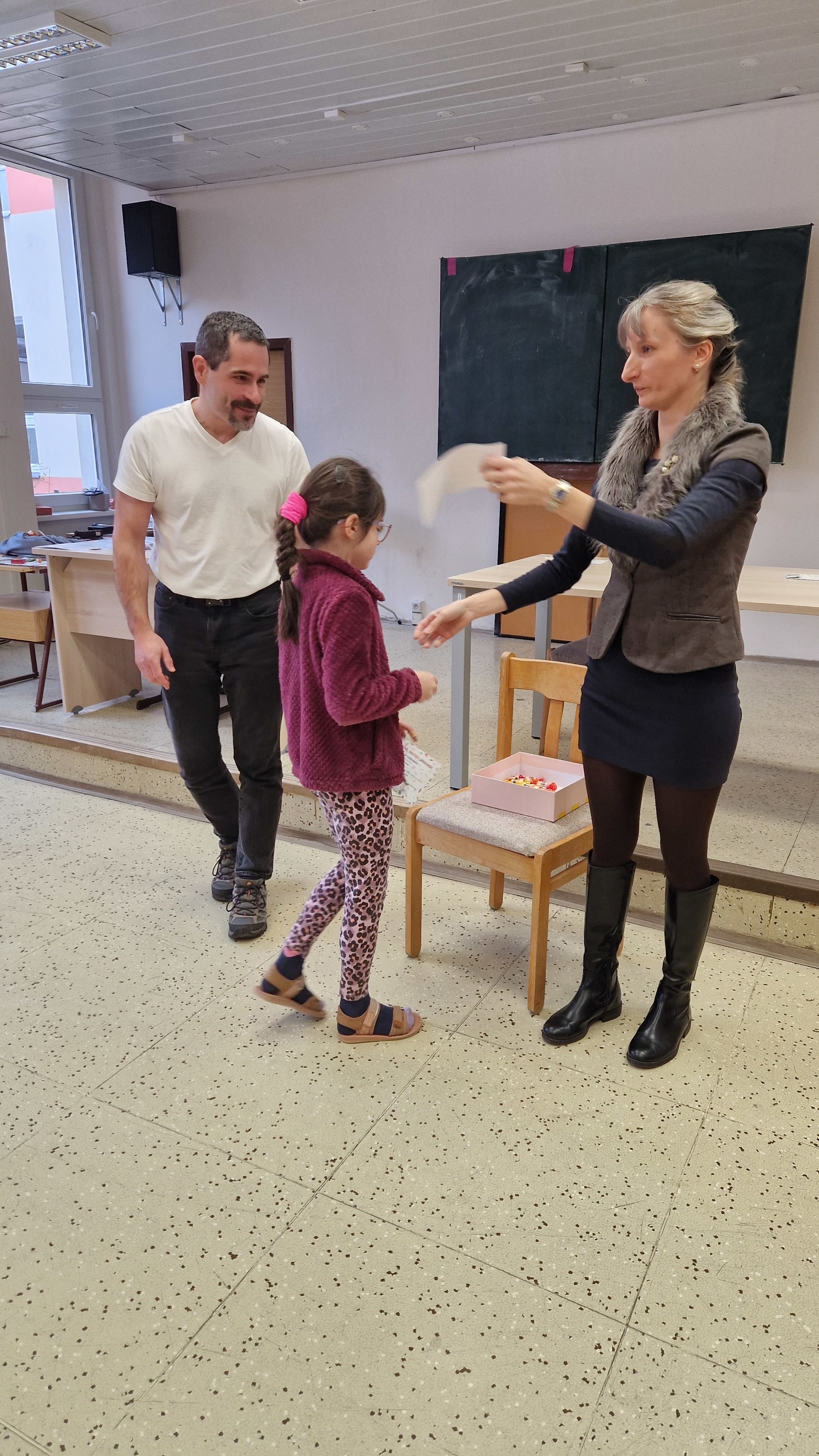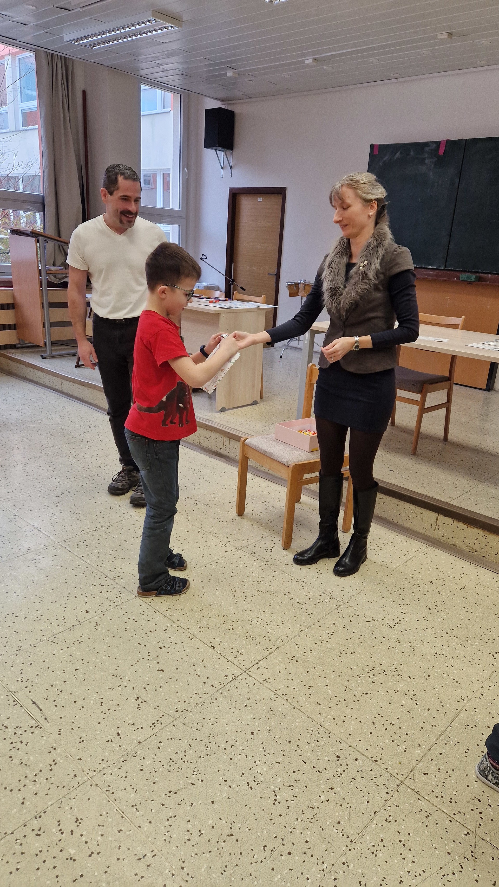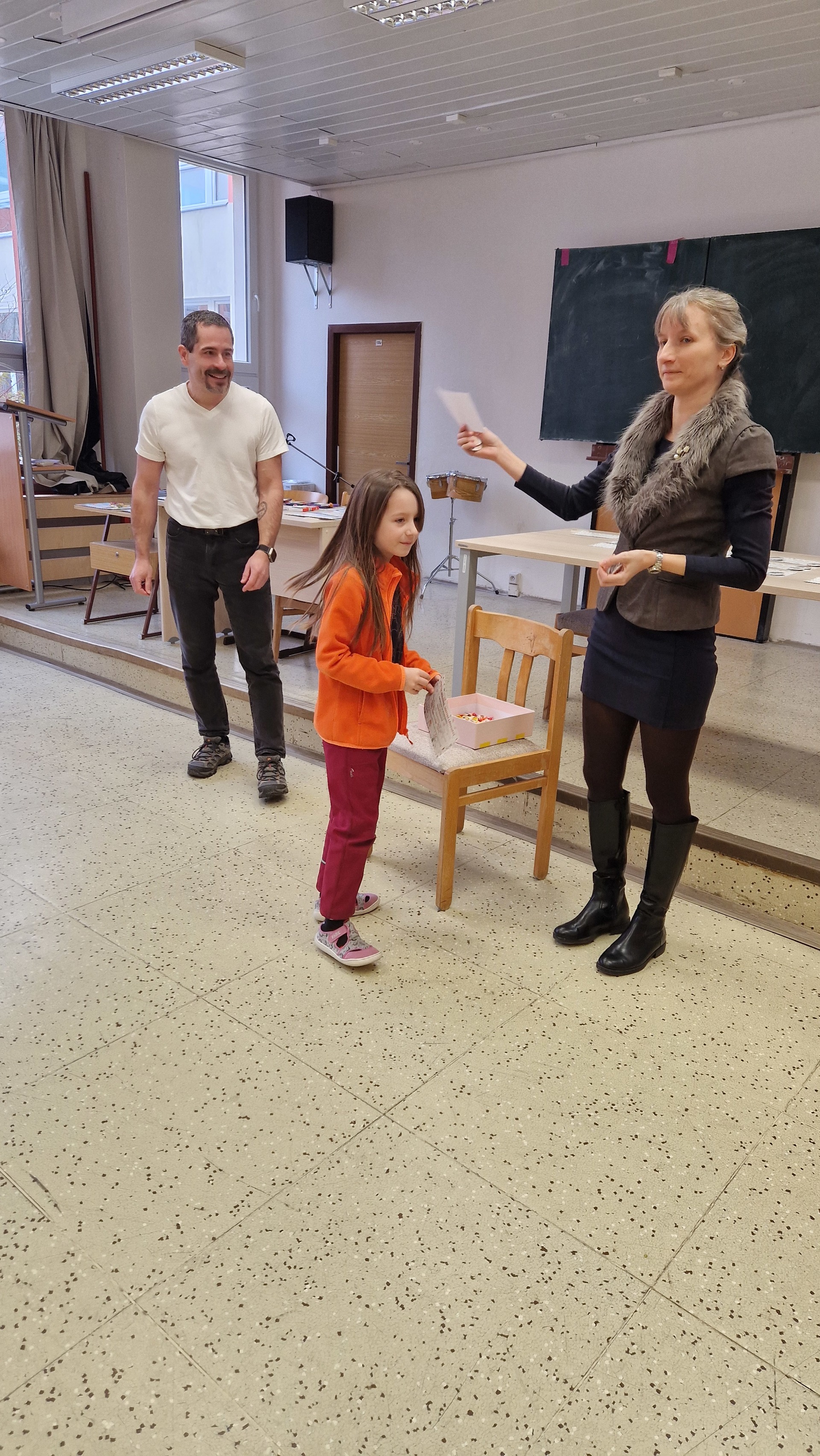 Ke čtenářským úspěchům přišel tentokrát malým i velkým čtenářům pogratulovat pan ředitel. Ocenil jejich čtenářské nadšení a motivoval k dalším radostným chvilkám s knihou v ruce.
