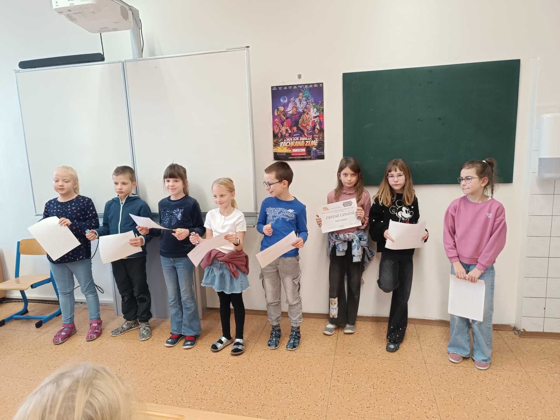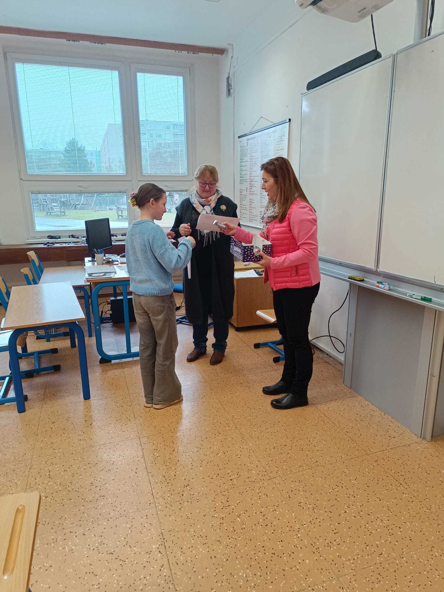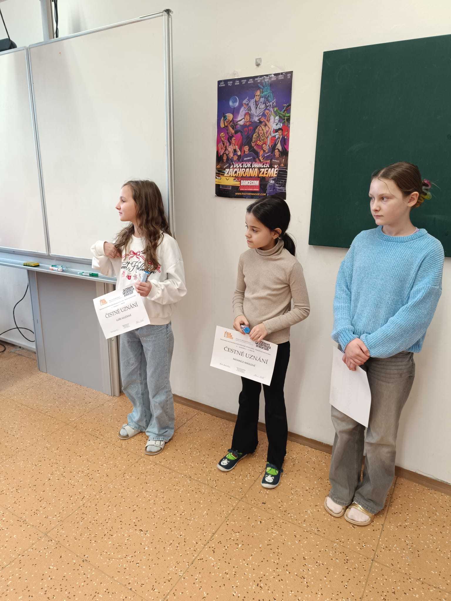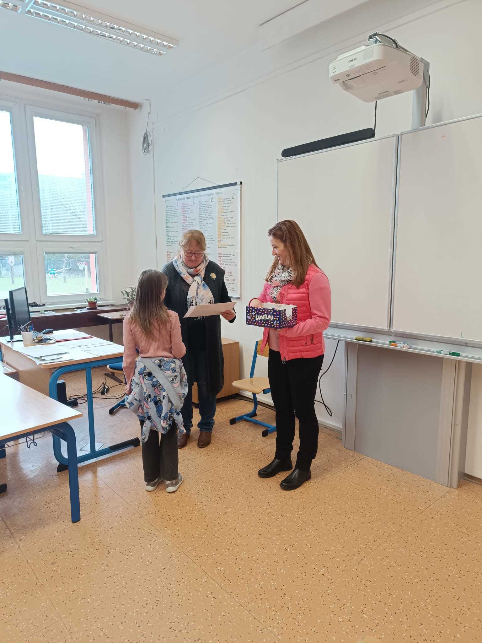 Na naší škole proběhla recitační soutěž "Pražské poetické setkání 2026" a do obvodního kola postoupili z 2.A Grétka Cimermanová, ze 3.C Polina Shelest, ze 4.A Petr Gajdoš a z 5.D Sebastian Holý. Ve dnech 13. 3 a 16. 3. se konalo obvodní kolo soutěže a do krajského kola přehlídky postoupila Grétka Cimermanová ze 2.A. Grétce moc blahopřejeme a budeme držet palce!