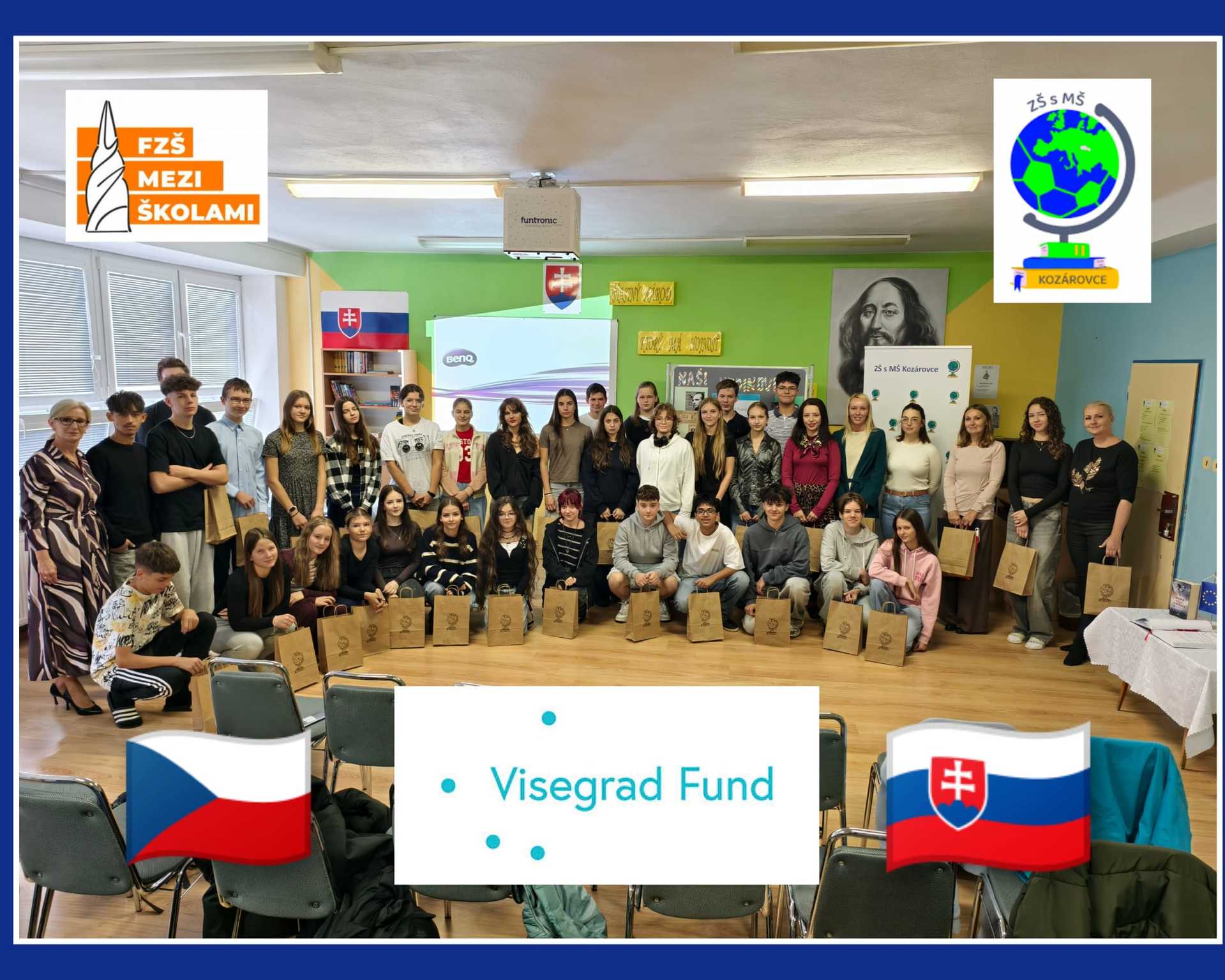 Spolu s učitelkami, které se podílely na přípravě projektu a aktivit, nás přivítala také paní ředitelka, jež nám představila školu, její činnost a doprovázela nás po celý den – jak při aktivitách, tak během exkurze. Na všechny žáky i učitelky čekaly dárky s logem Visegrad.