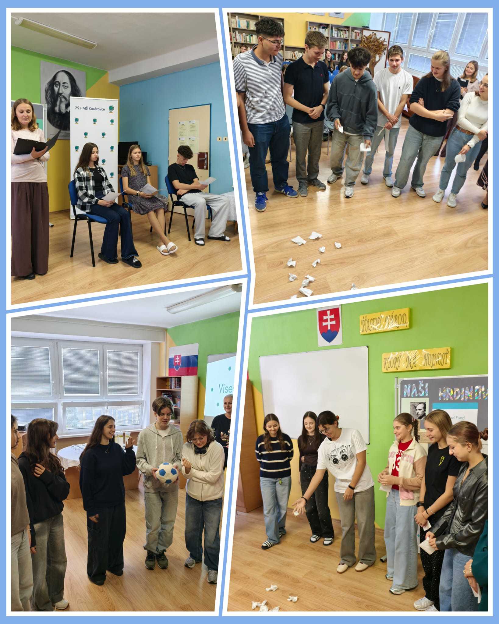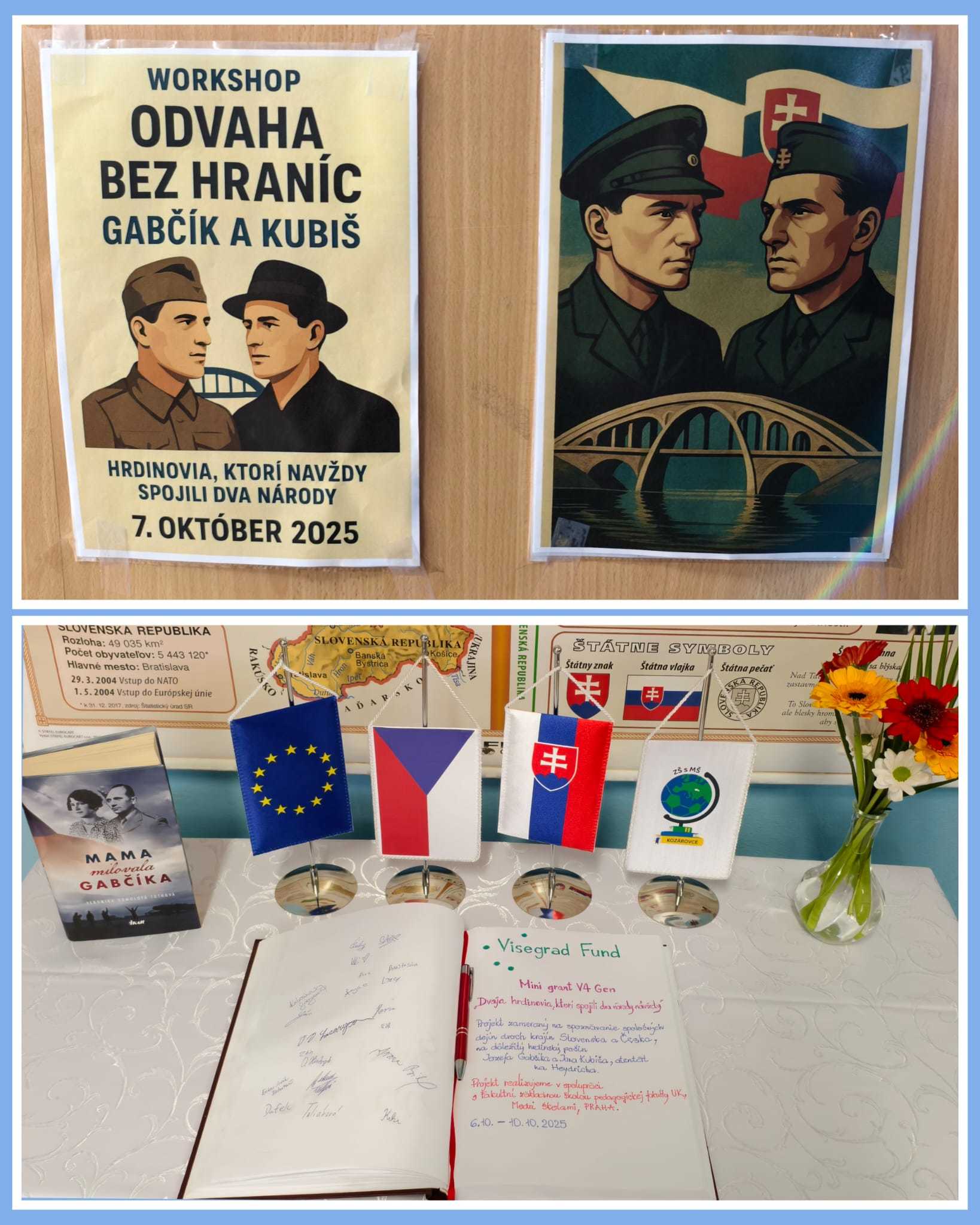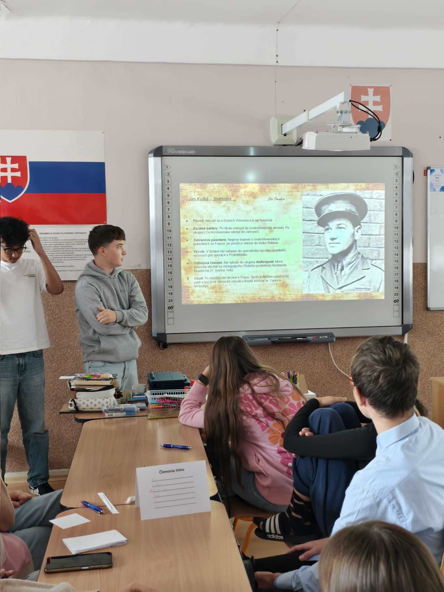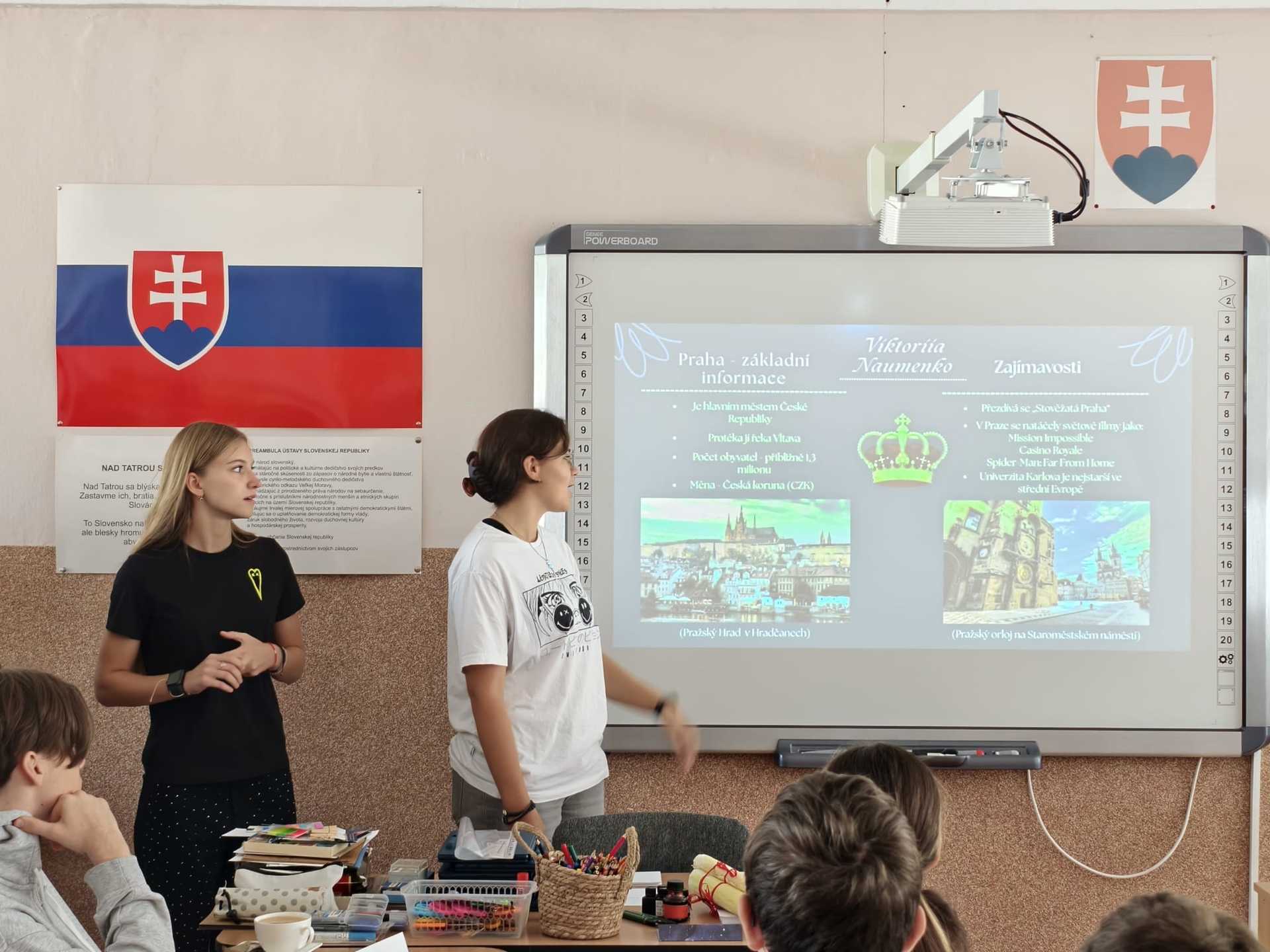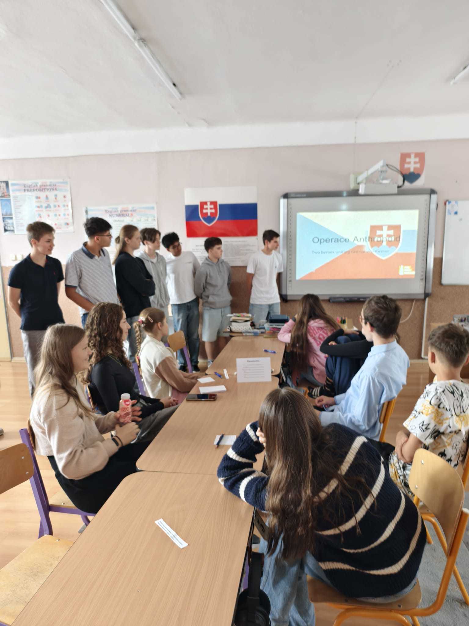 Po slavnostním přivítání nám slovenští žáci představili život a činy Jozefa Gabčíka, zatímco naši žáci prezentovali naši školu a připravili prezentaci o Jánu Kubišovi.