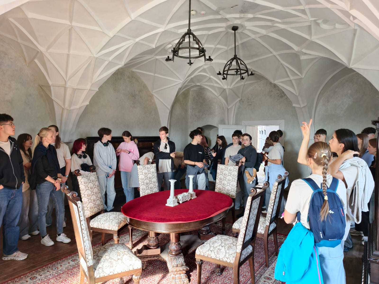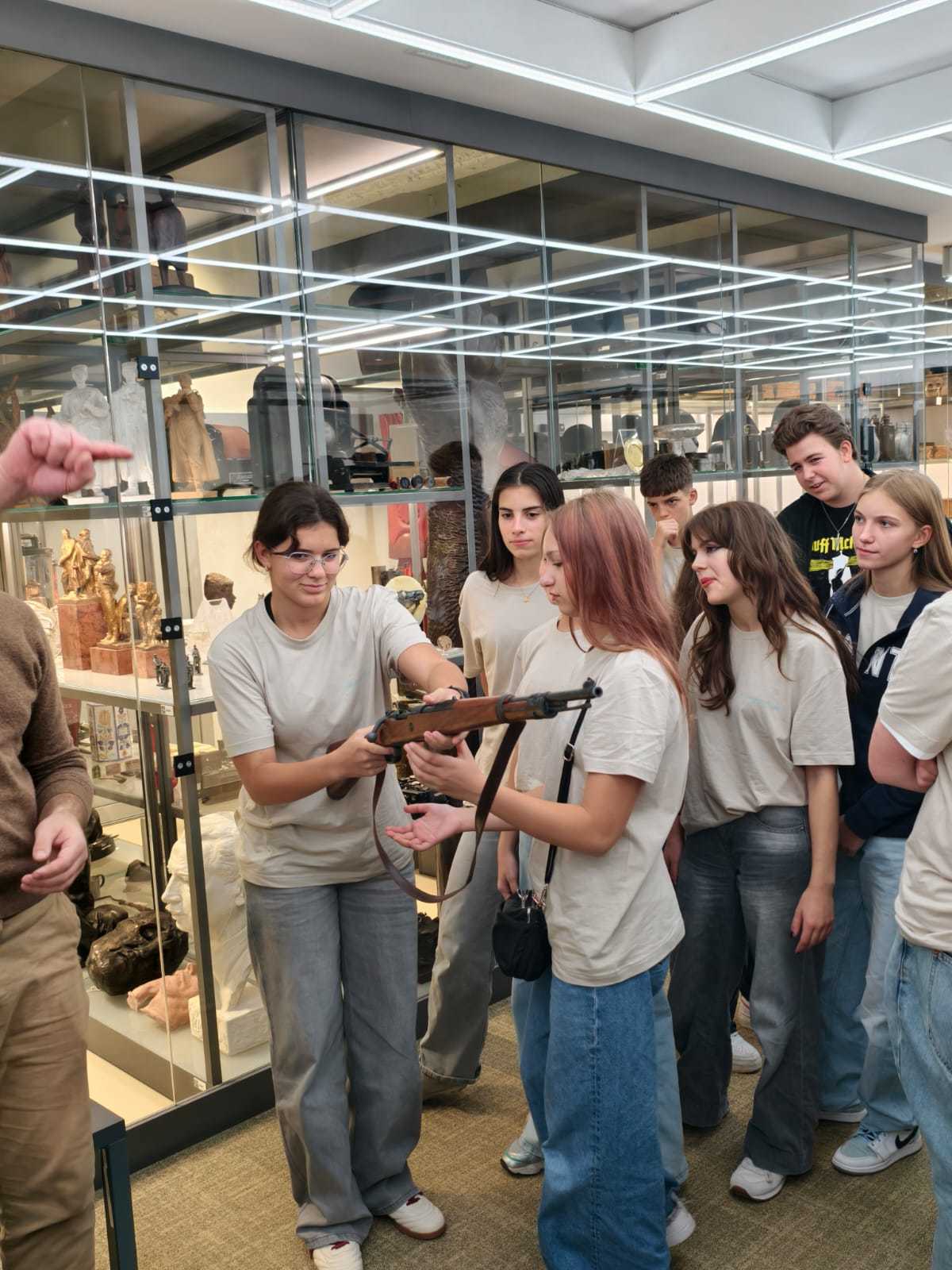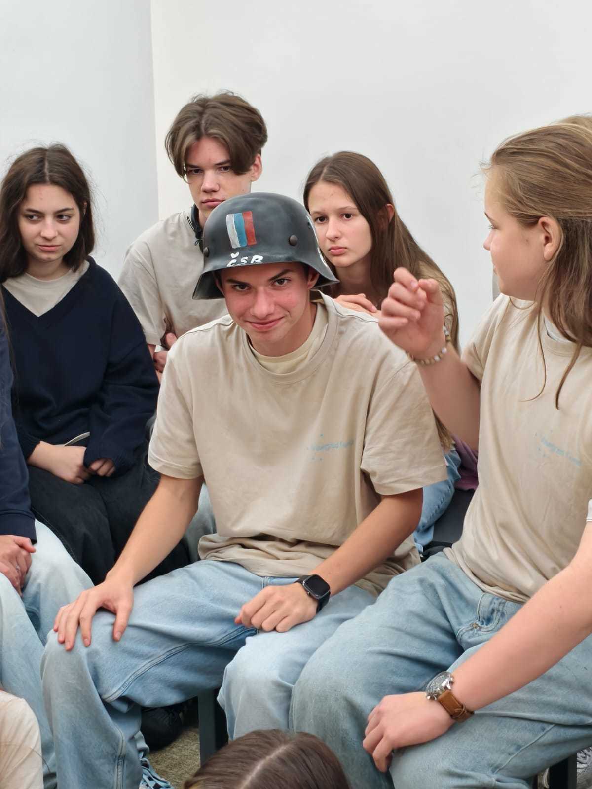 Naší první zastávkou bylo Muzeum SNP, kde jsme absolvovali poutavý výklad, dozvěděli se o historii Slovenského národního povstání, zhlédli exponáty a mohli si vyzkoušet i dobové předměty – například vojenský kabát, repliky zbraní či původní funkční telefon. Žáci kladli mnoho zajímavých otázek a projevili skutečný zájem o téma.