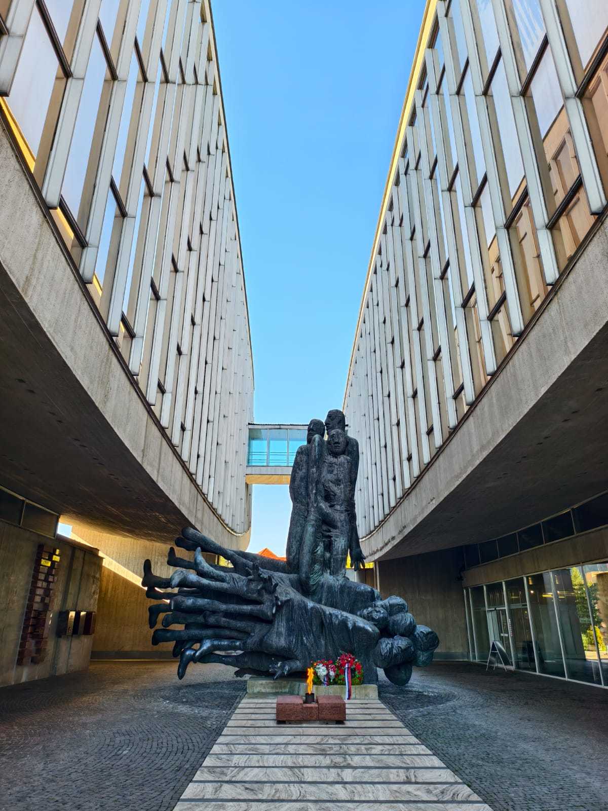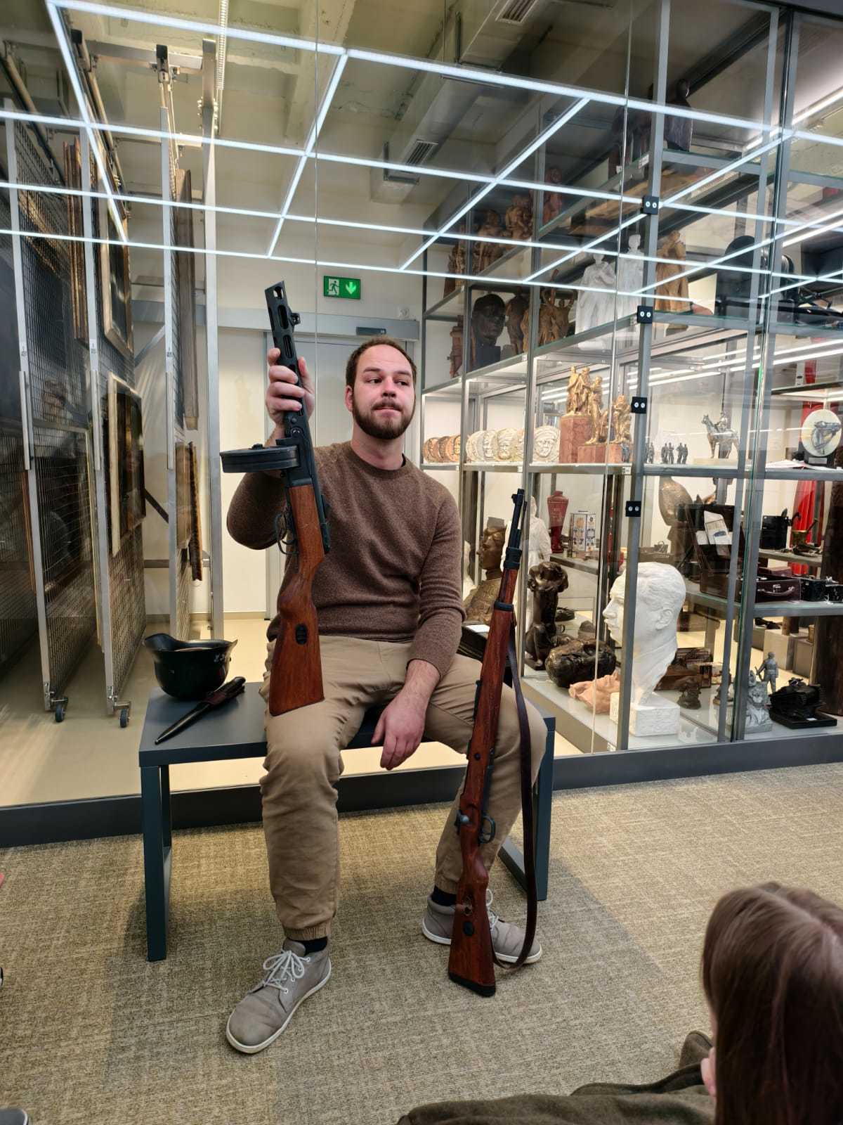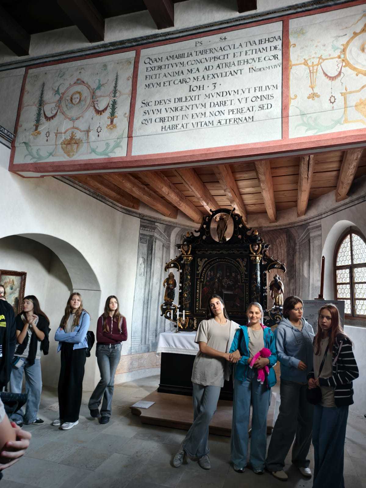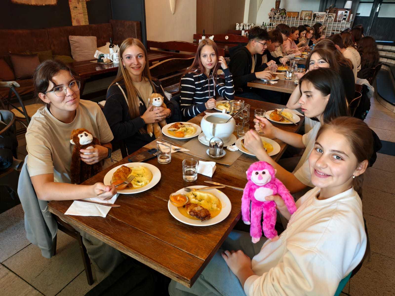 Naší první zastávkou bylo Muzeum SNP, kde jsme absolvovali poutavý výklad, dozvěděli se o historii Slovenského národního povstání, zhlédli exponáty a mohli si vyzkoušet i dobové předměty – například vojenský kabát, repliky zbraní či původní funkční telefon. Žáci kladli mnoho zajímavých otázek a projevili skutečný zájem o téma.