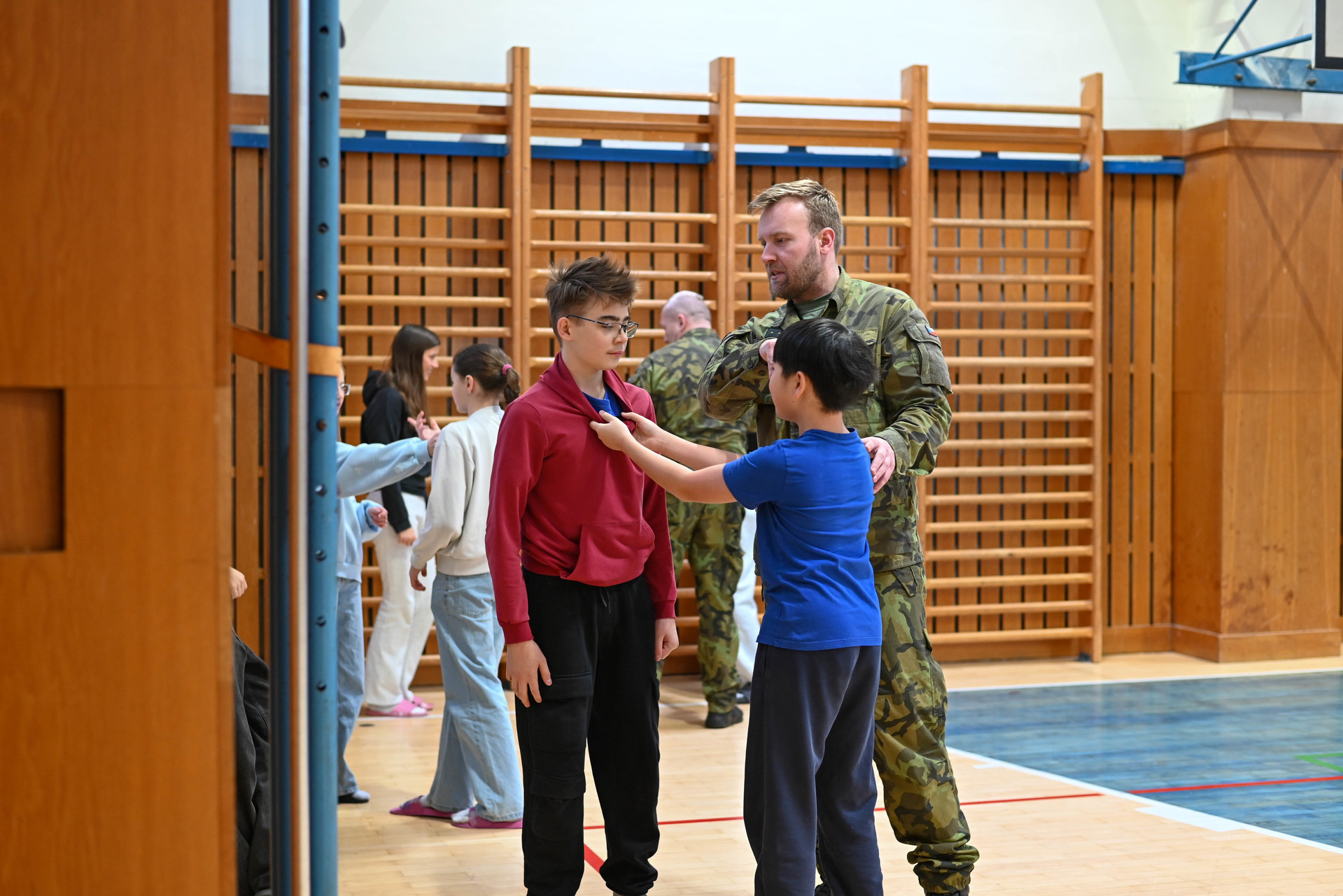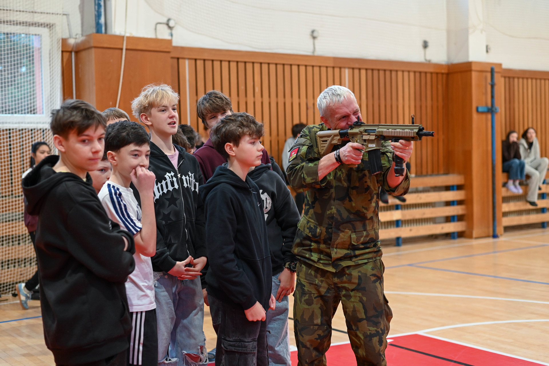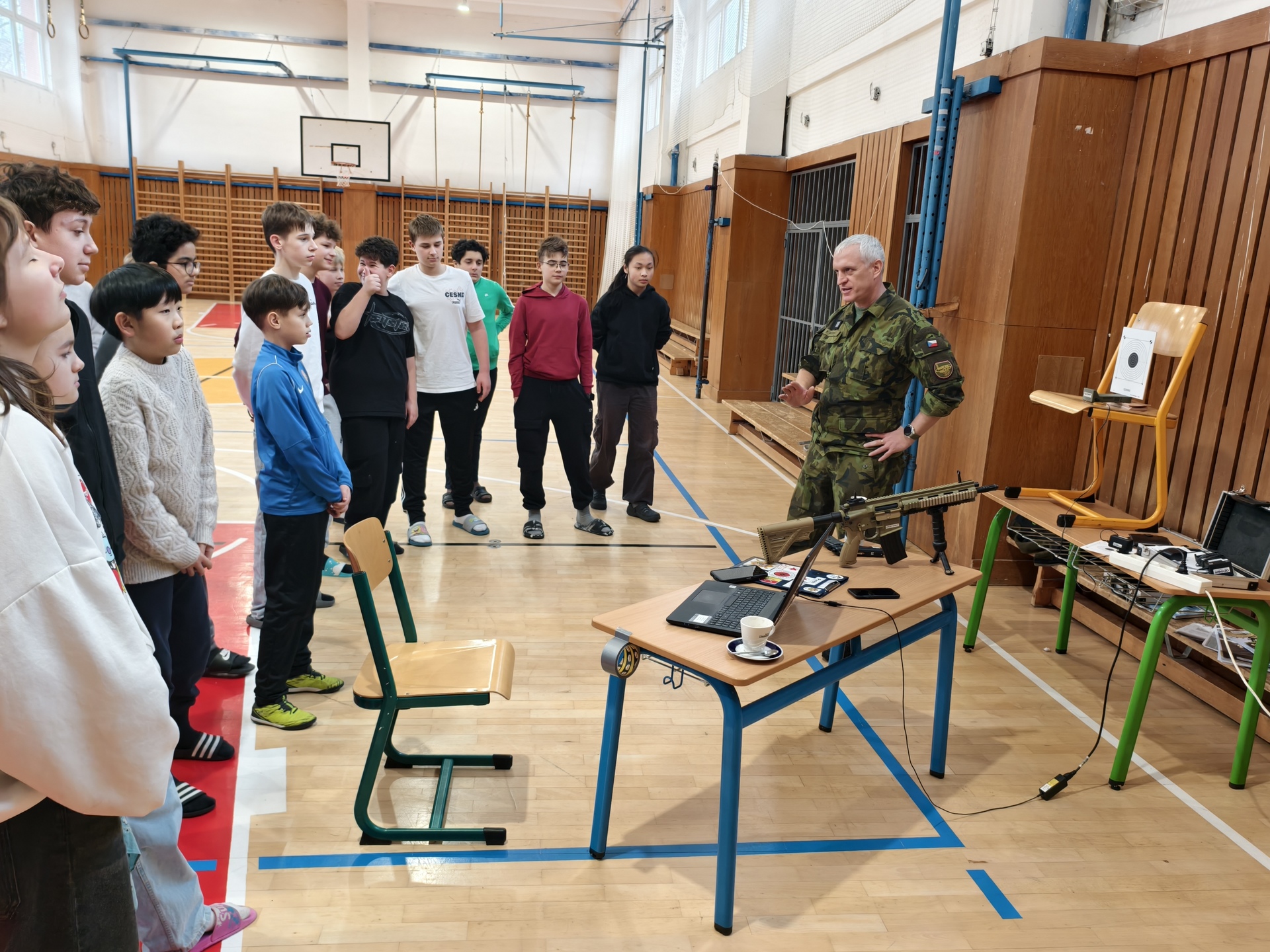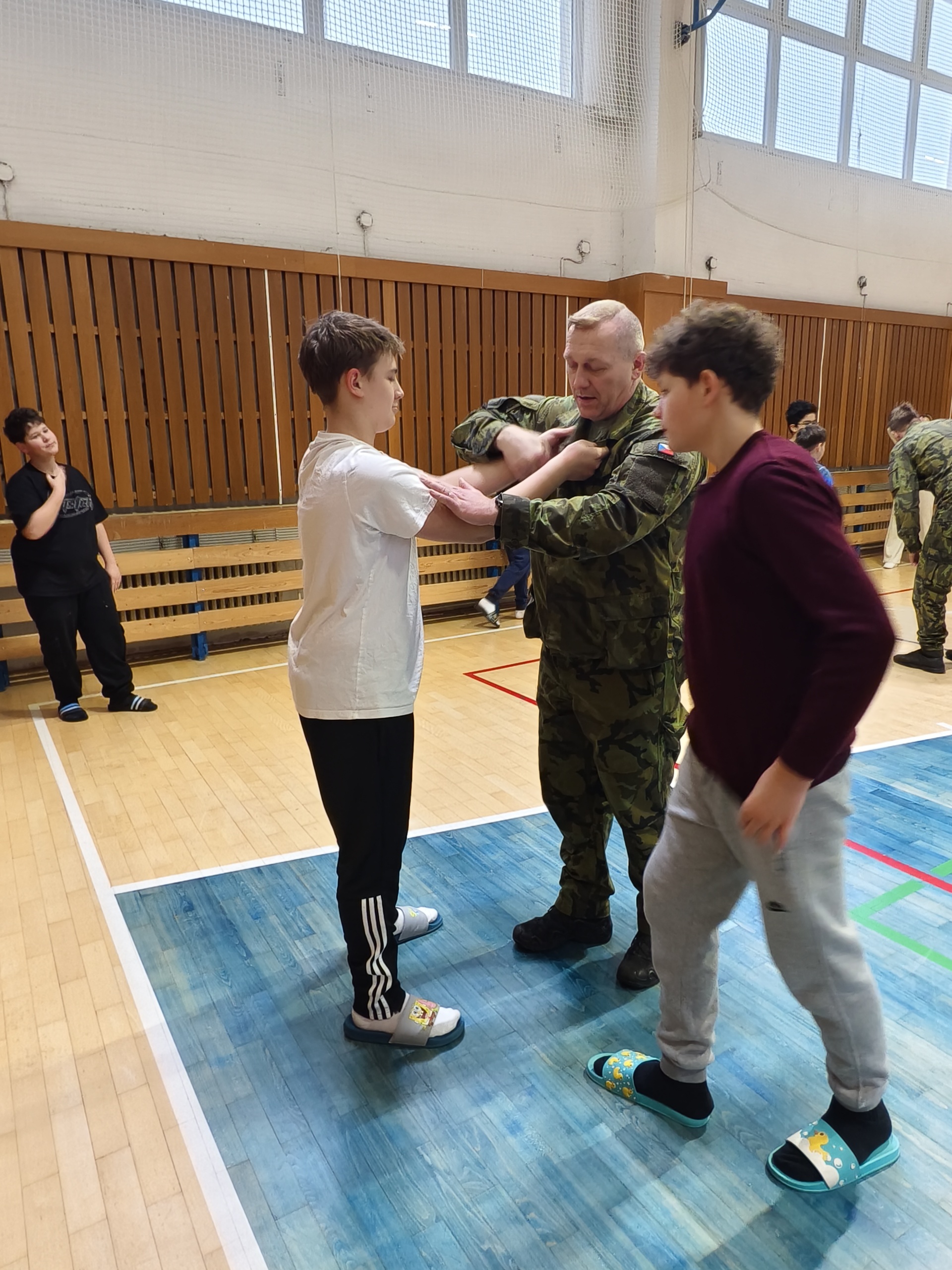 Dopolední program byl určen žákům 6. a 7. ročníků a nabídl jim řadu zajímavých a velmi praktických aktivit. Na jednotlivých stanovištích si děti vyzkoušely poskytování první pomoci a ošetření zraněného, osvojily si základy sebeobrany, seznámily se s vojenskou výstrojí a nechyběla ani střelba na cíl, která patřila mezi nejoblíbenější činnosti. Velký úspěch mělo také samotné vyzkoušení vojenské výstroje, díky němuž si žáci mohli lépe uvědomit fyzickou náročnost práce profesionálních vojáků.
