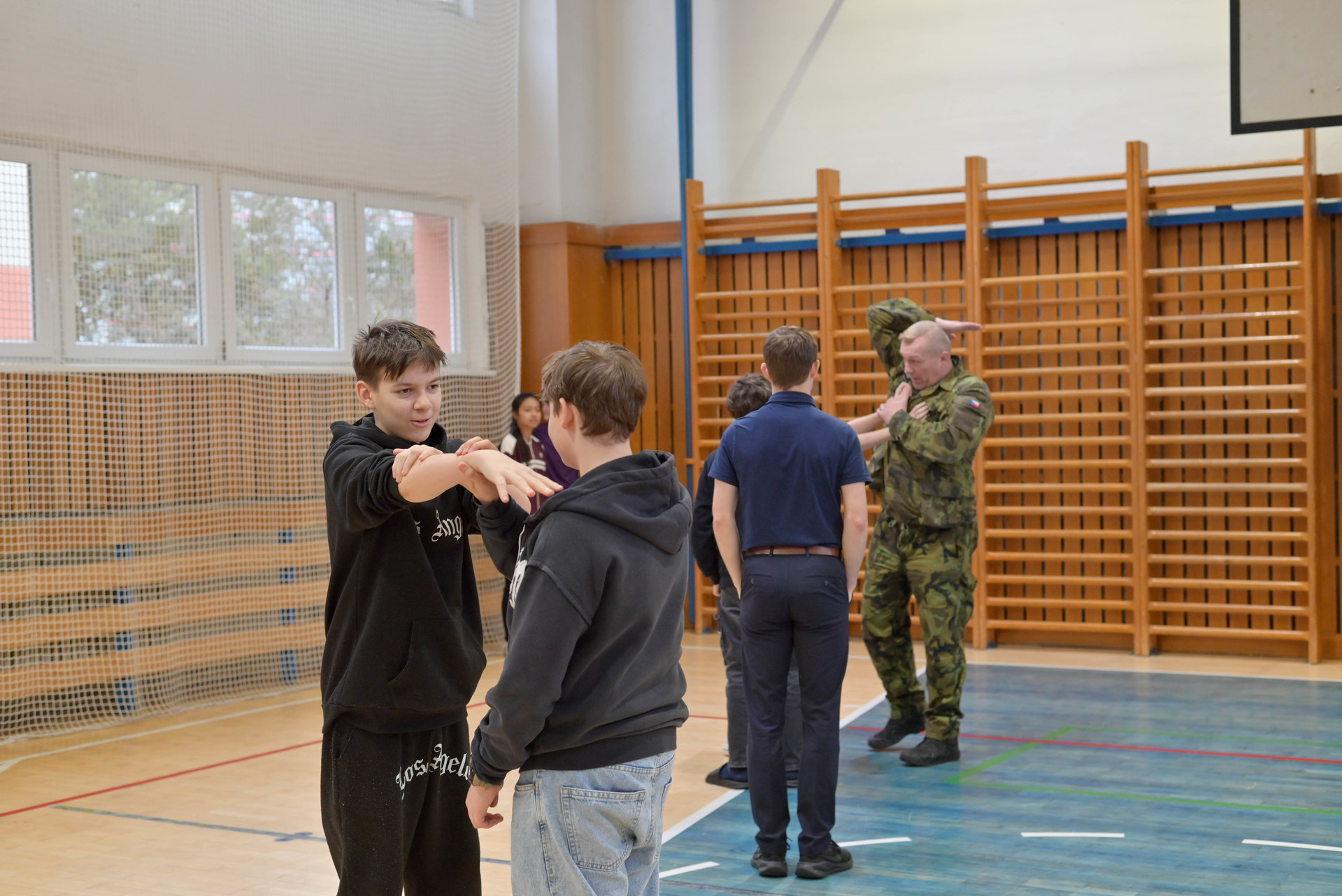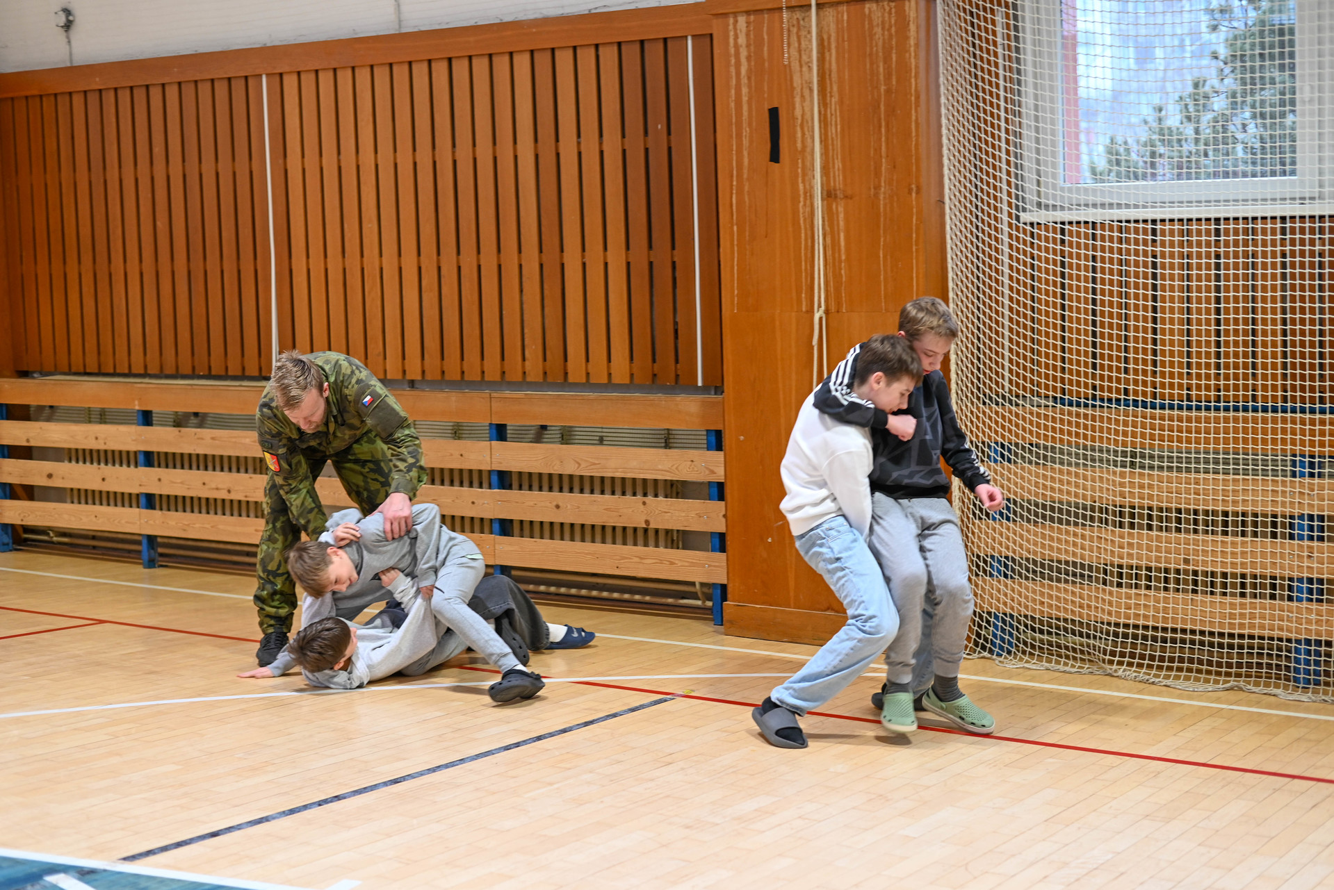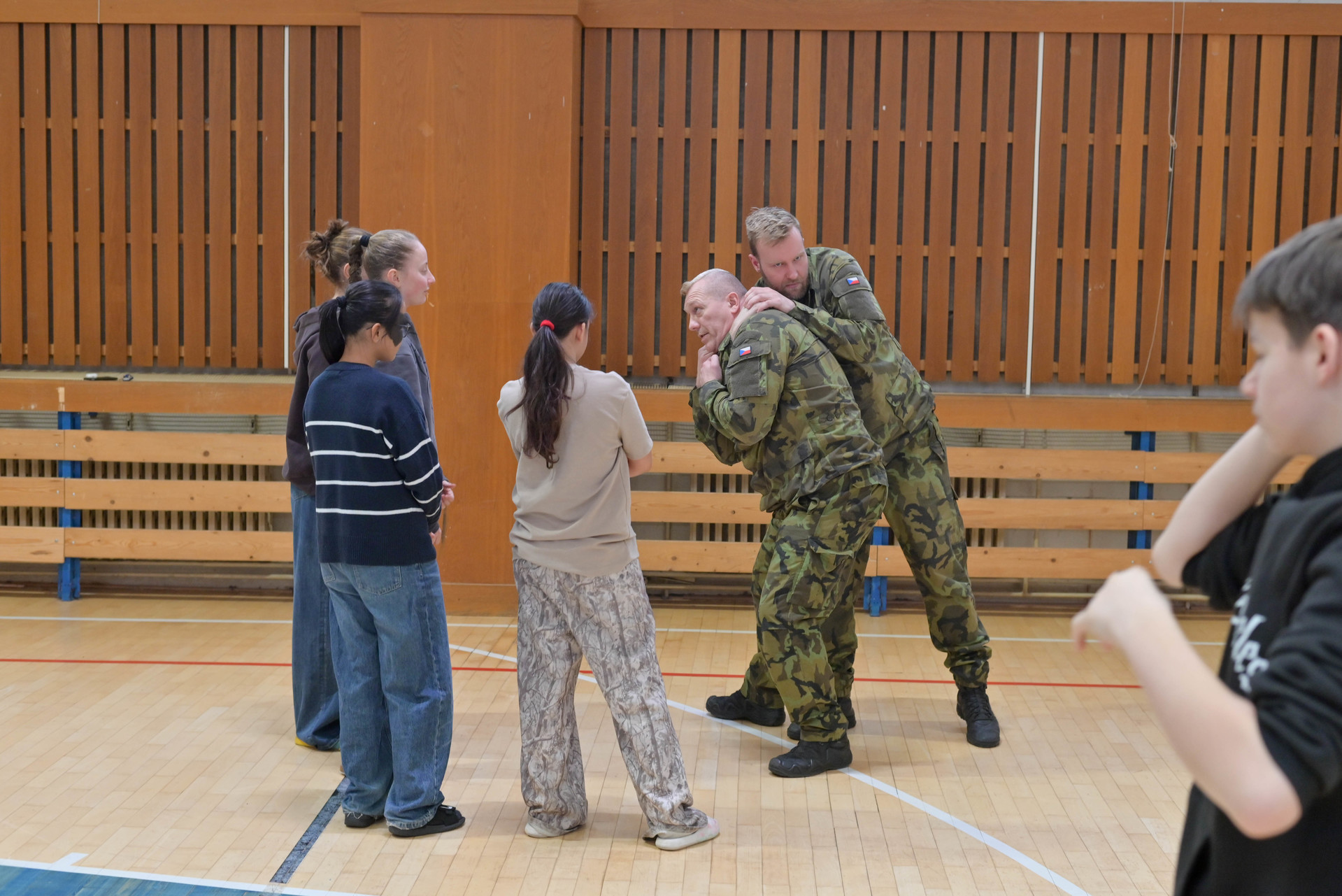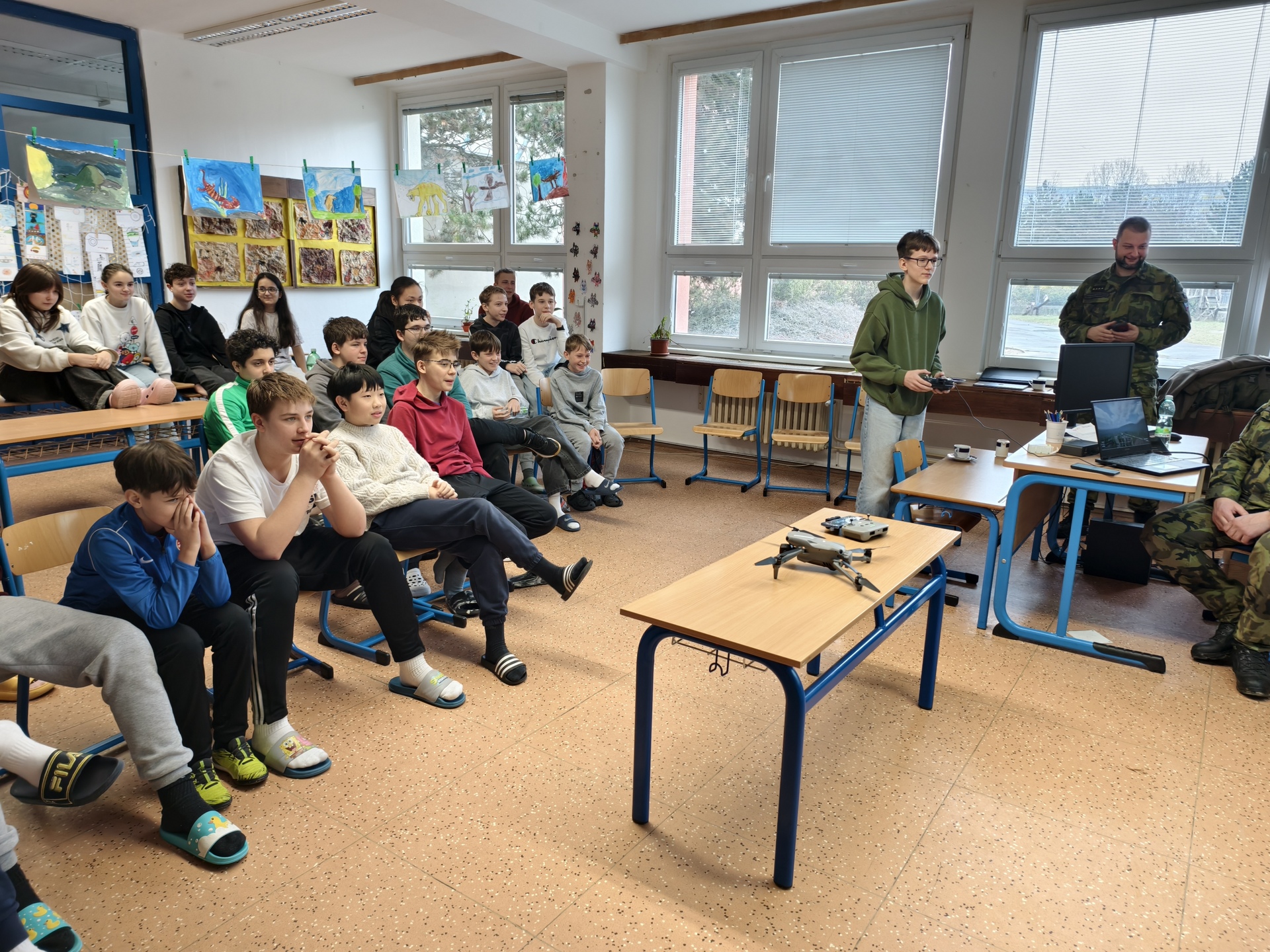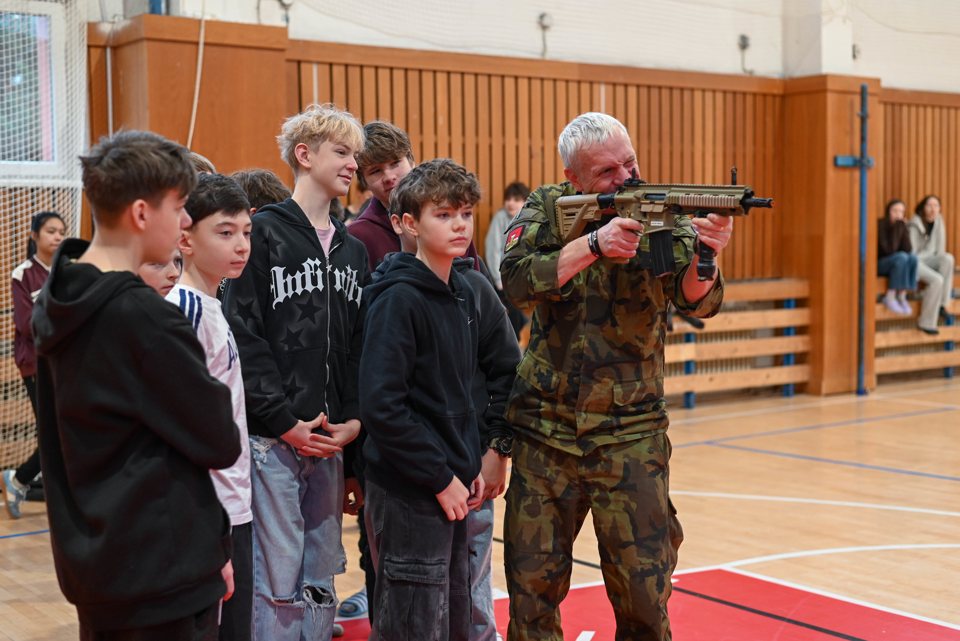 Dopolední program byl určen žákům 6. a 7. ročníků a nabídl jim řadu zajímavých a velmi praktických aktivit. Na jednotlivých stanovištích si děti vyzkoušely poskytování první pomoci a ošetření zraněného, osvojily si základy sebeobrany, seznámily se s vojenskou výstrojí a nechyběla ani střelba na cíl, která patřila mezi nejoblíbenější činnosti. Velký úspěch mělo také samotné vyzkoušení vojenské výstroje, díky němuž si žáci mohli lépe uvědomit fyzickou náročnost práce profesionálních vojáků.