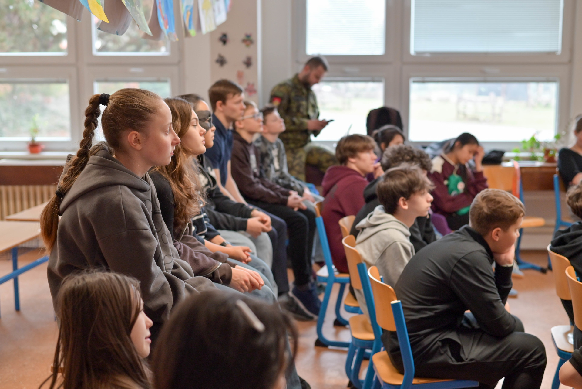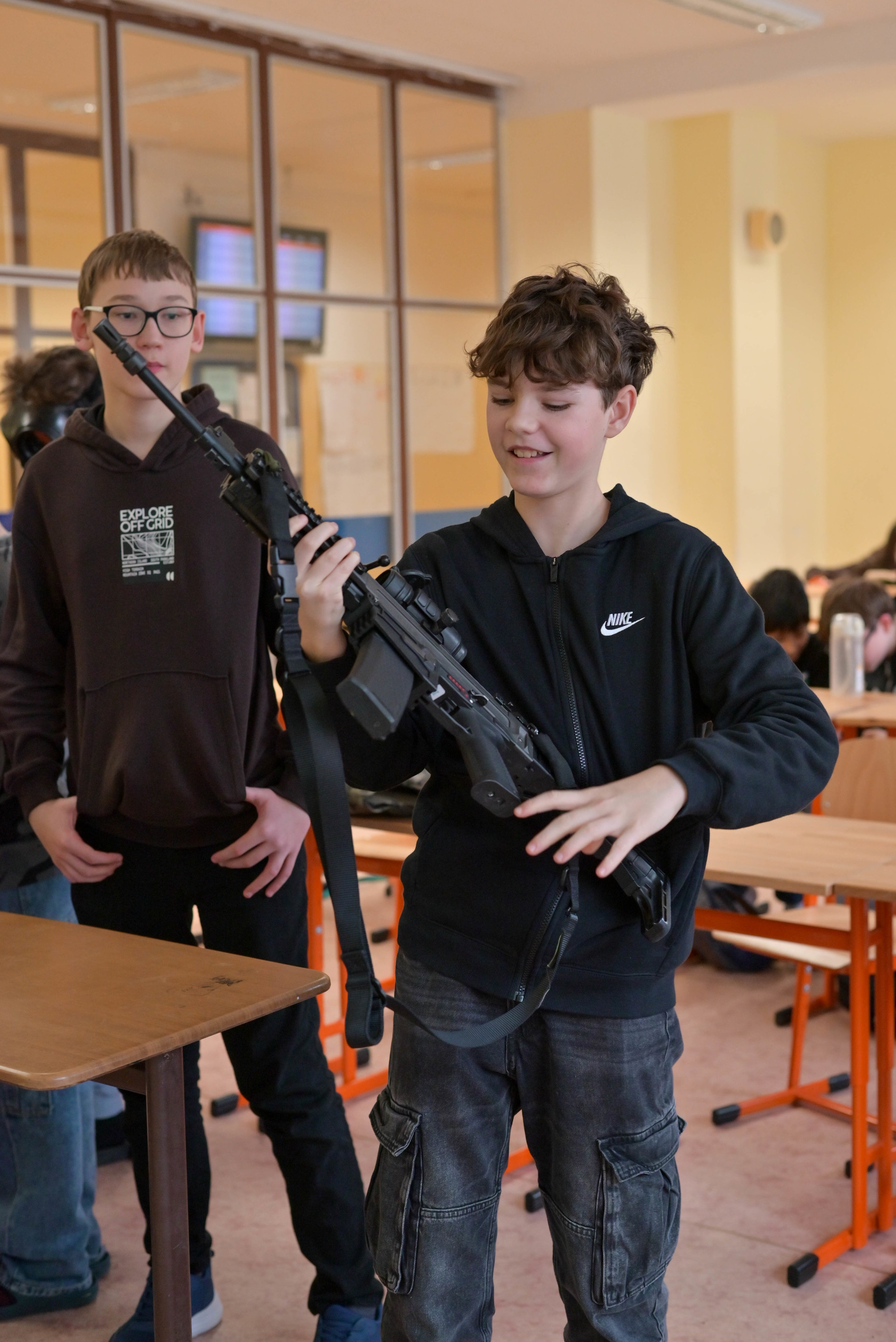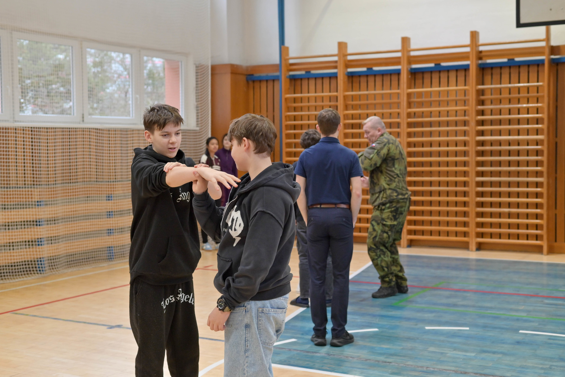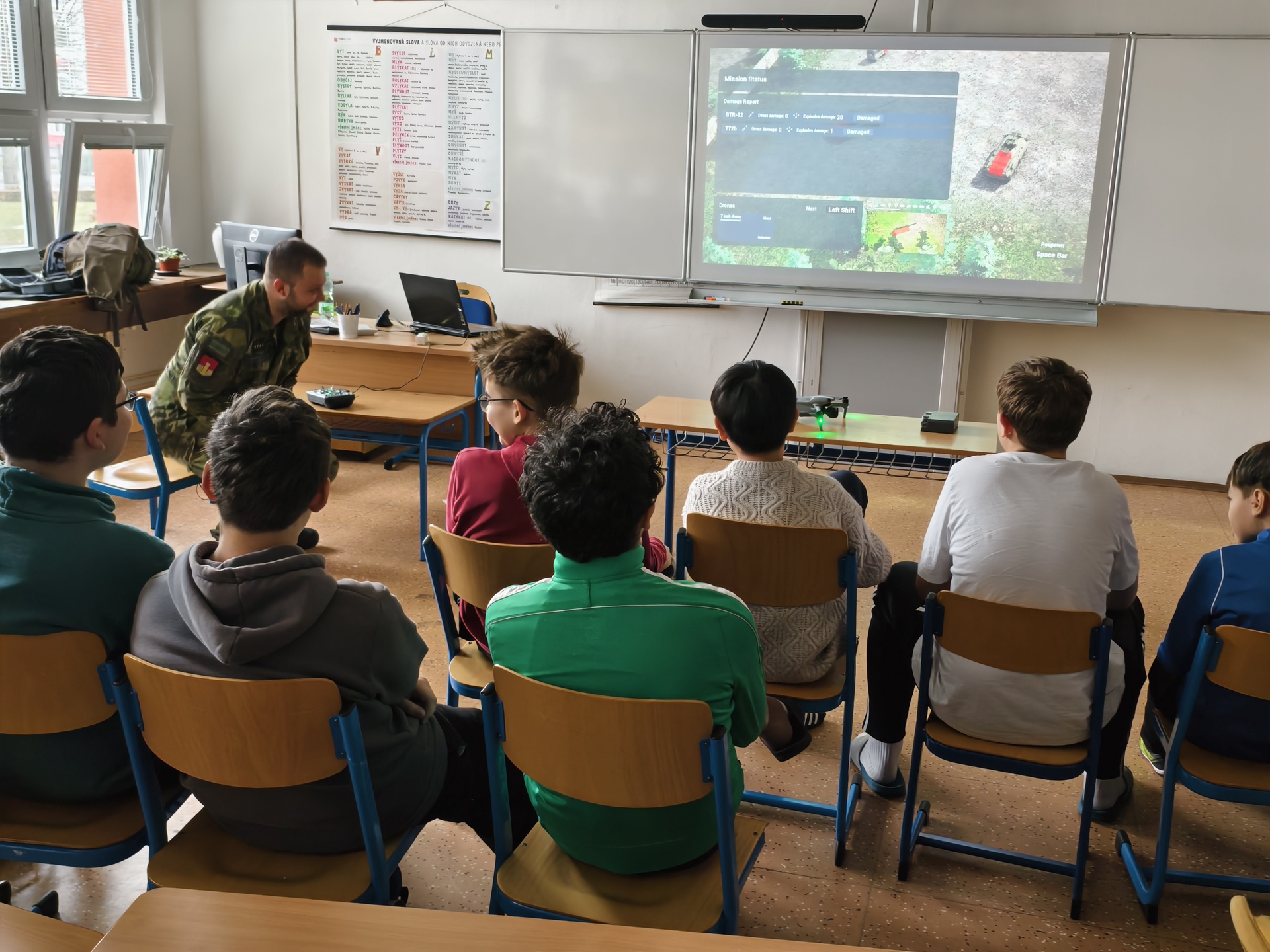 Dopolední program byl určen žákům 6. a 7. ročníků a nabídl jim řadu zajímavých a velmi praktických aktivit. Na jednotlivých stanovištích si děti vyzkoušely poskytování první pomoci a ošetření zraněného, osvojily si základy sebeobrany, seznámily se s vojenskou výstrojí a nechyběla ani střelba na cíl, která patřila mezi nejoblíbenější činnosti. Velký úspěch mělo také samotné vyzkoušení vojenské výstroje, díky němuž si žáci mohli lépe uvědomit fyzickou náročnost práce profesionálních vojáků.