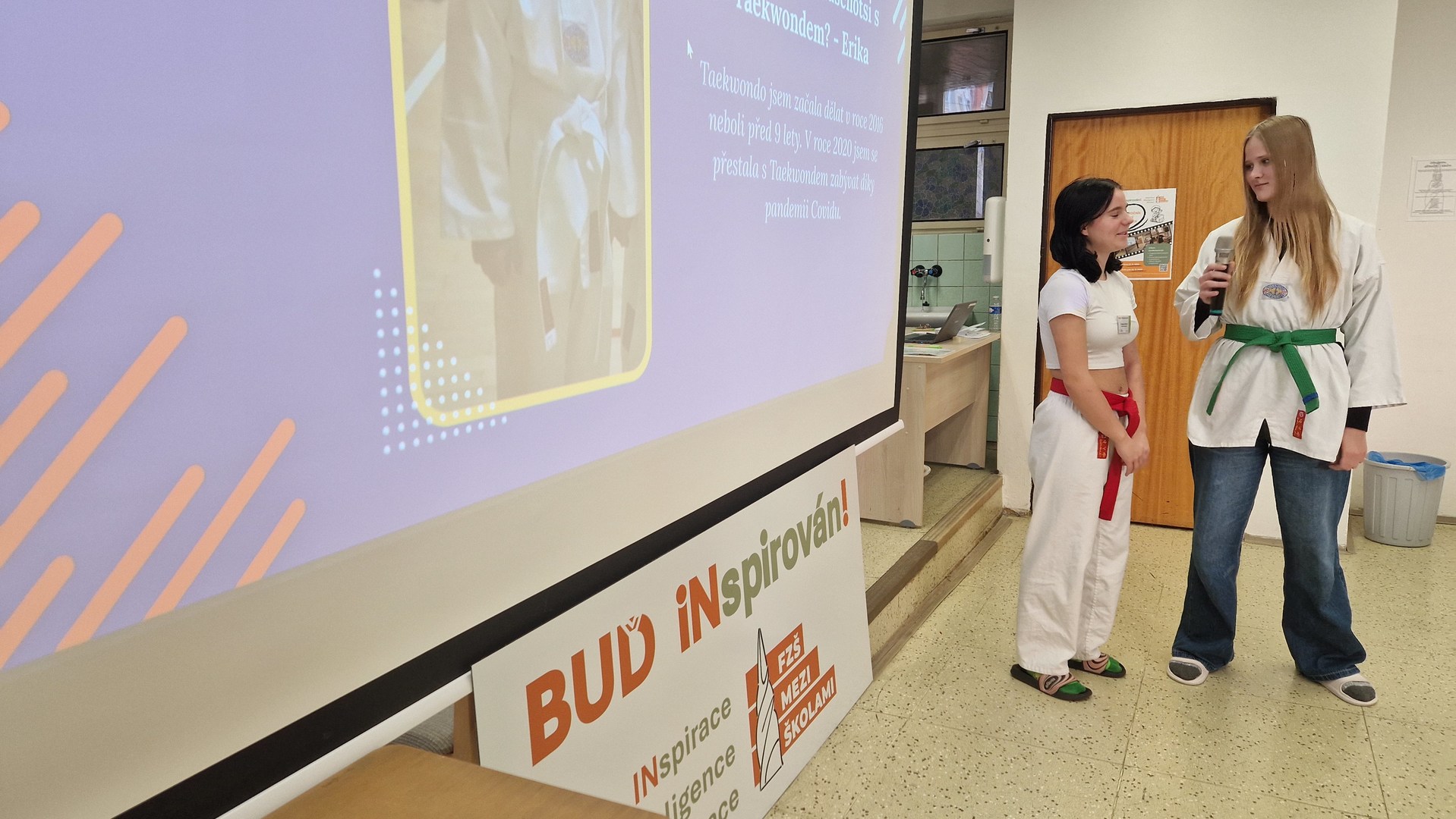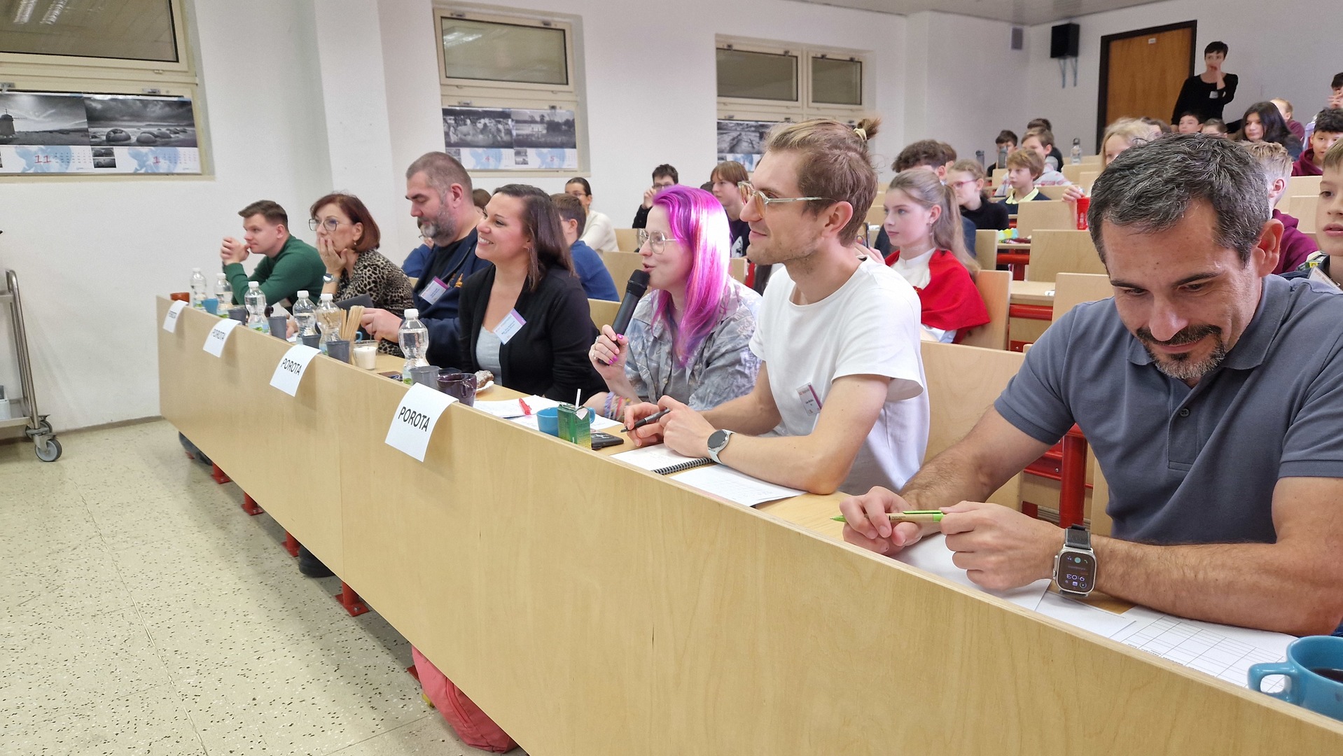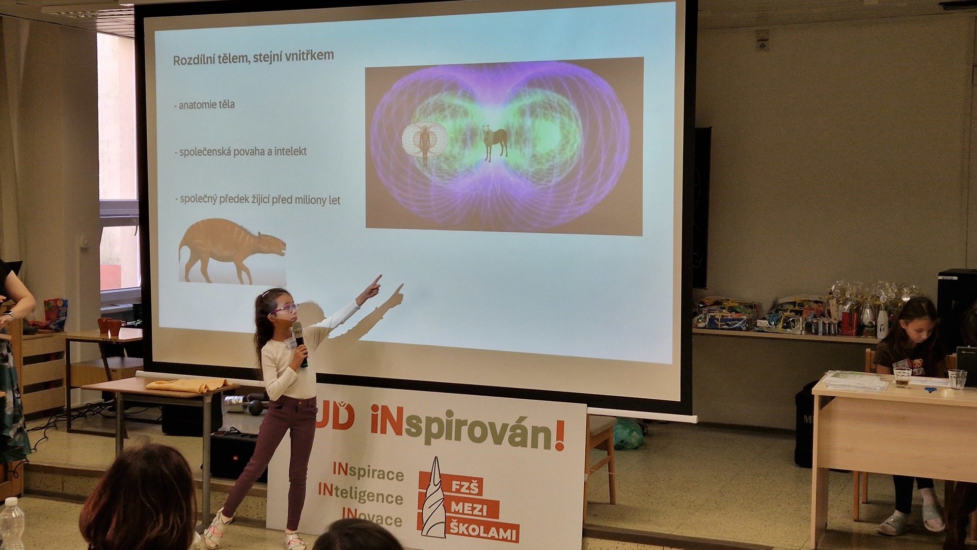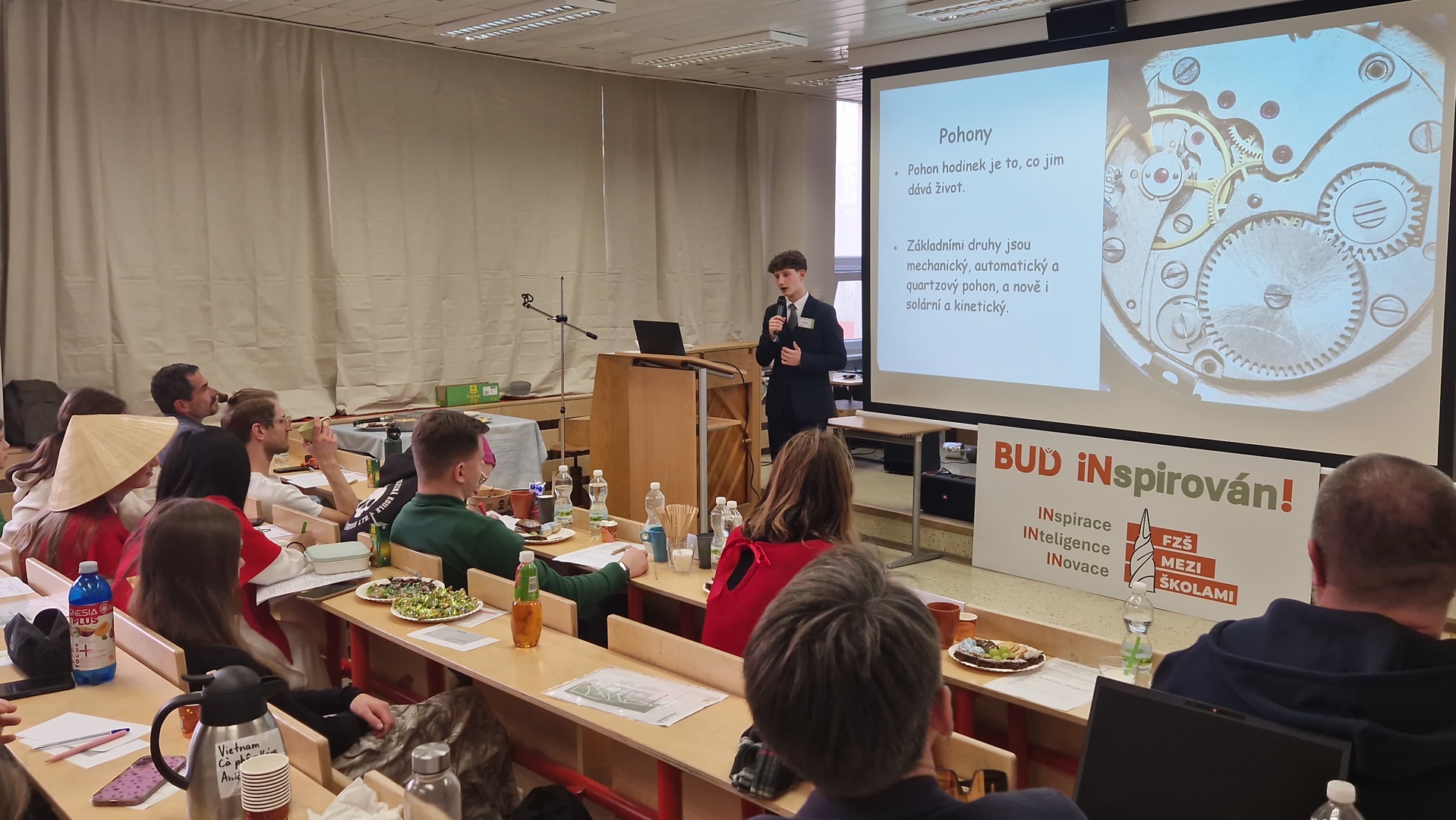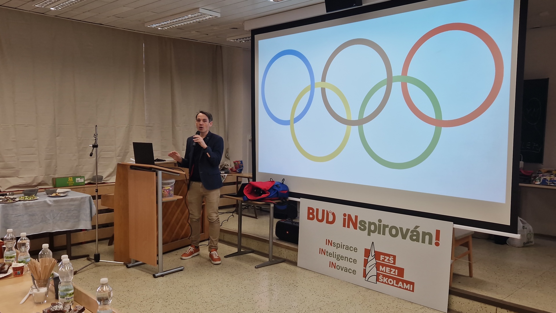 Během dne jsme se dozvěděli spoustu nových a inspirativních informací o zvířatech, sportech, historii i kultuře. Soutěžící, kteří odvážně vystoupili před porotou i svými vrstevníky, si vyzkoušeli také odpovídat na dotazy porotců i publika, kteří se aktivně ptali a poskytovali zpětnou vazbu. Úspěch u žáků měl také doprovodný program připravený externími odborníky, paní Ing. Lenkou Hronovou z TEDx a pan Mgr. Tomáš Budka z České televize, kterého mohou žáci znát z televizních obrazovek a reportáží třeba o olympijských hrách. Vedle nich v porotě usedli zástupci naší školy (vedení školy, speciální pedagožka, pan školník) a také pan Ing. Adam Martiška z TEDx a pan Aleš Matějka z Univerzity Karlovy v Praze. Nechybělo ani drobné občerstvení, a tak se žáci mohli opravdu cítit jako na odborné konferenci :-)