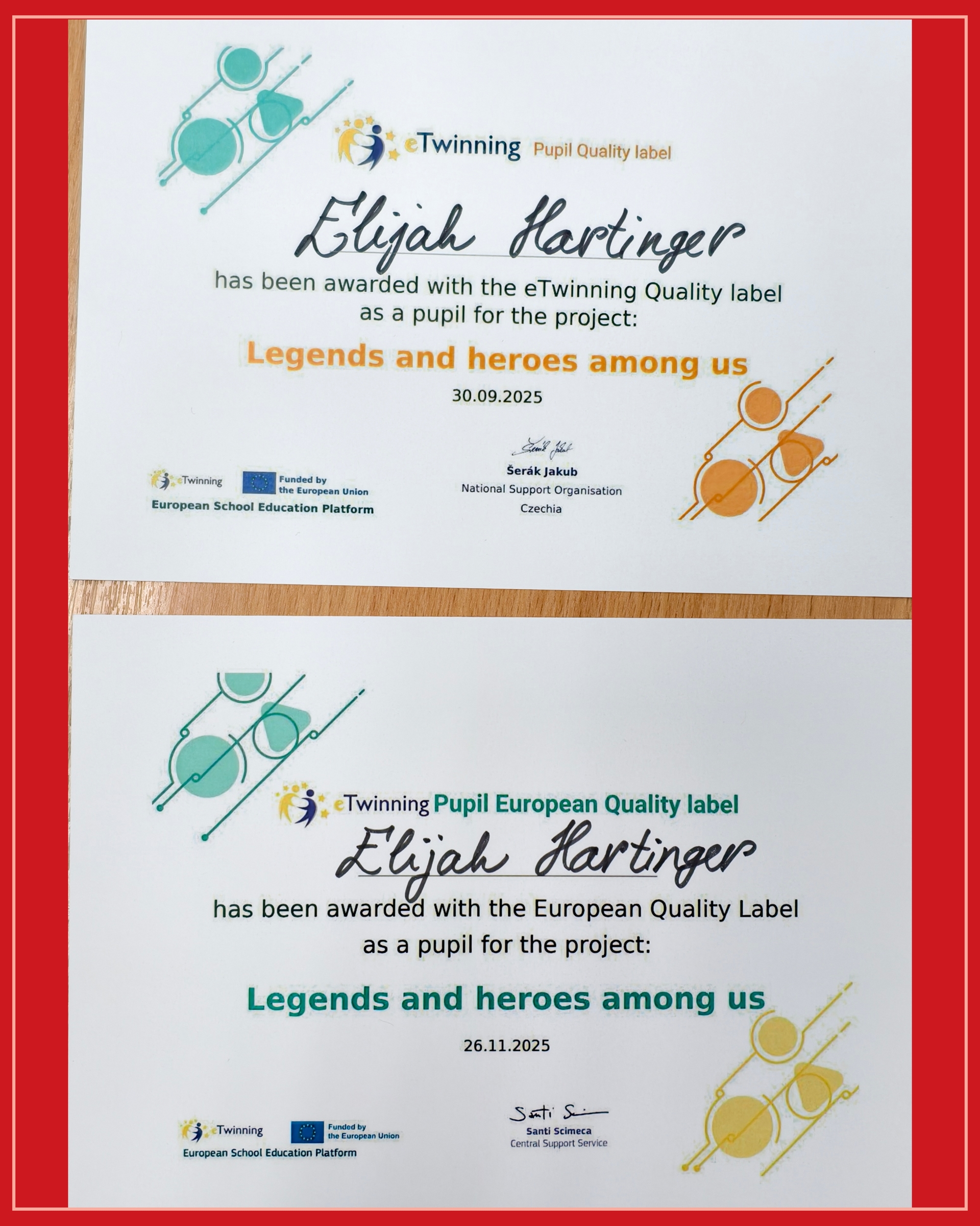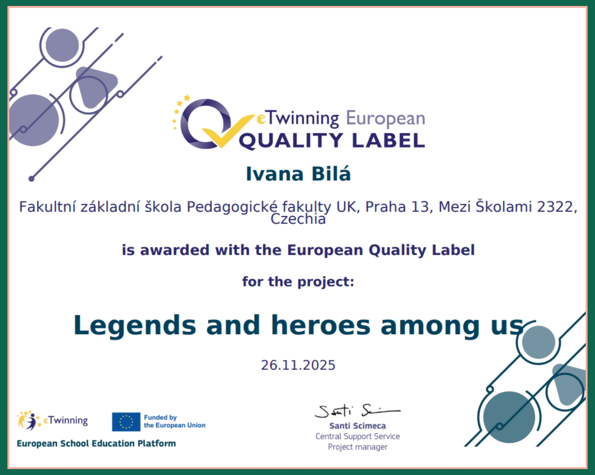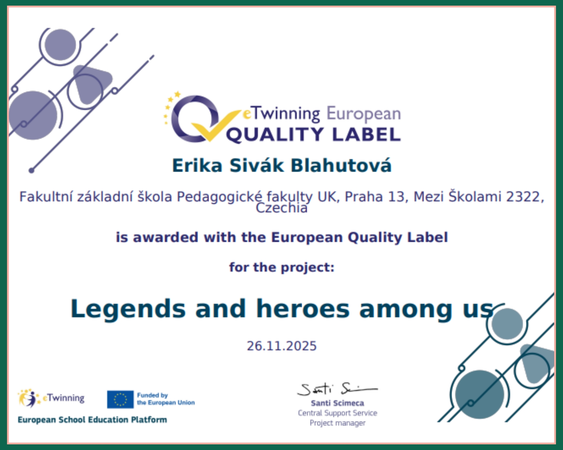 Evropský certifikát kvality oceňuje práci všech učitelů a žáků zapojených do eTwinningového projektu. Je to nejvyšší ocenění udělené Centrální podpůrnou službou v Bruselu, je důkazem toho, že projekt patří mezi nejvýše hodnocené – je plný kreativity, inovativní výuky a smysluplné mezinárodní spolupráce.