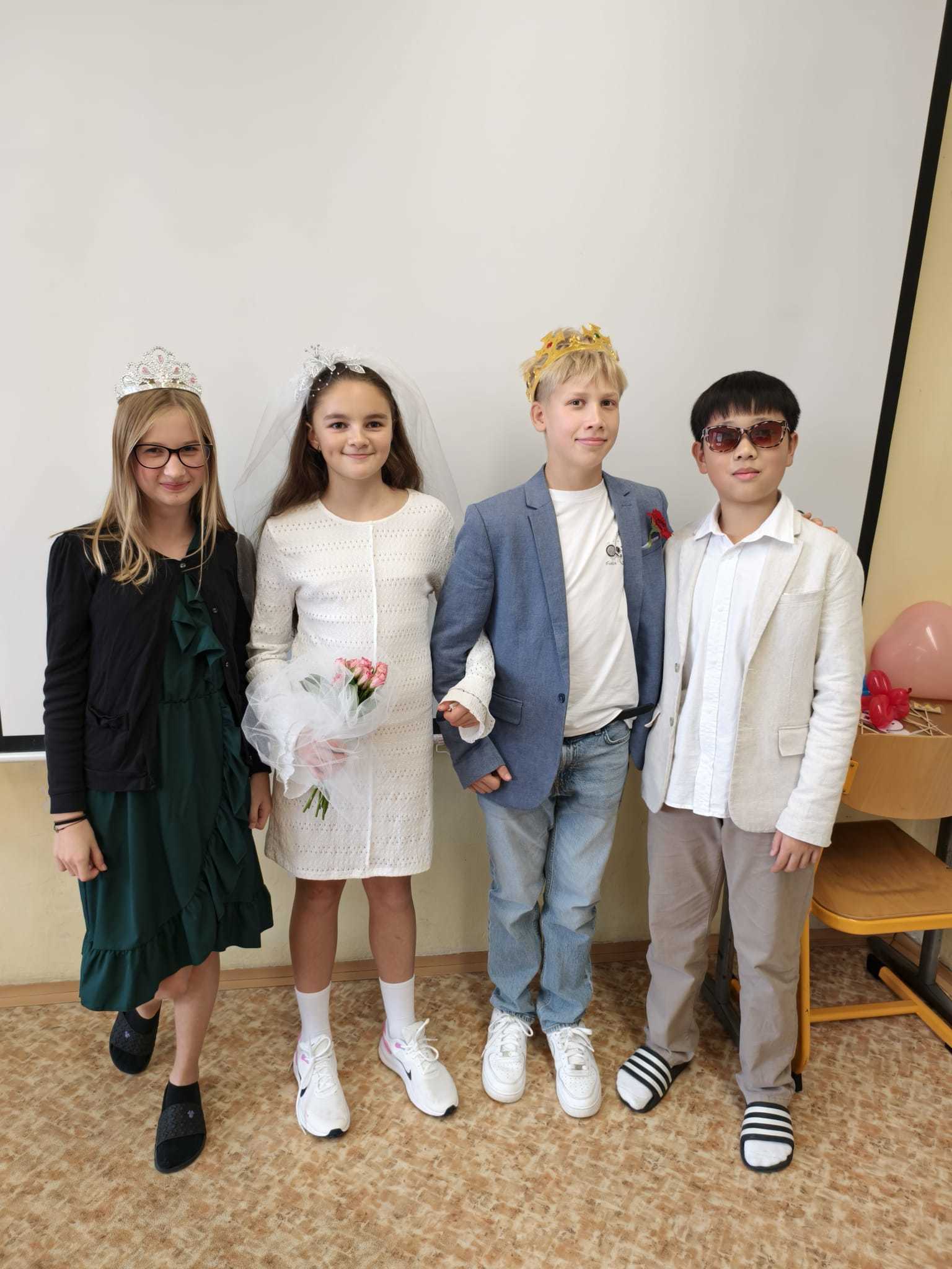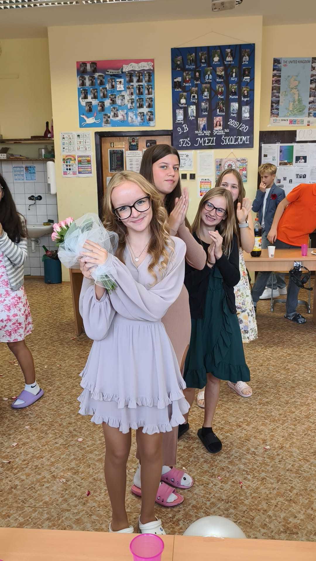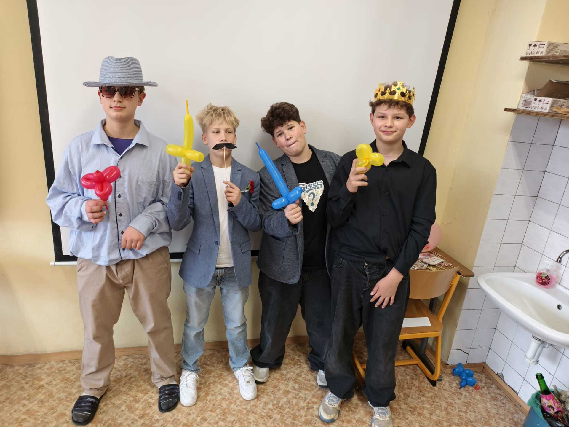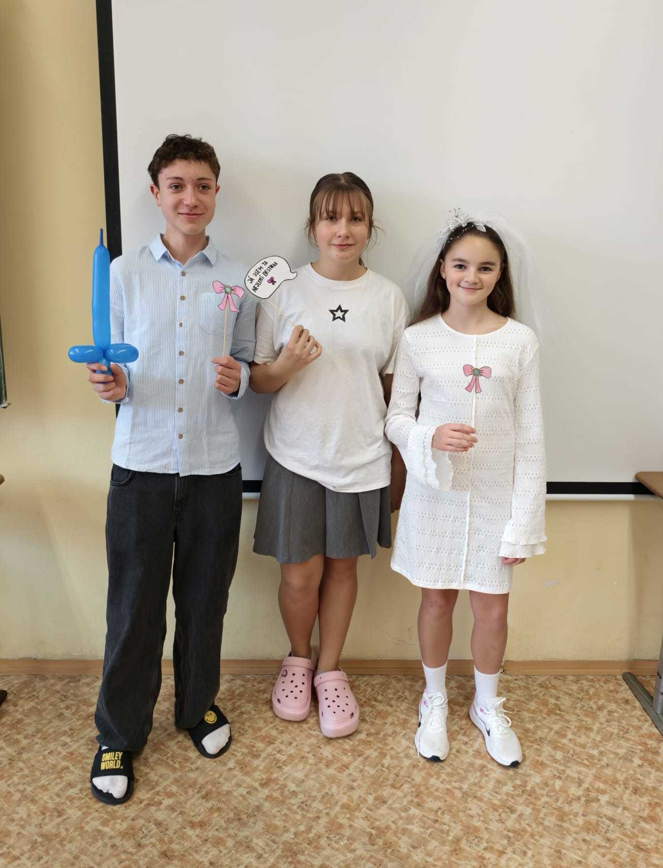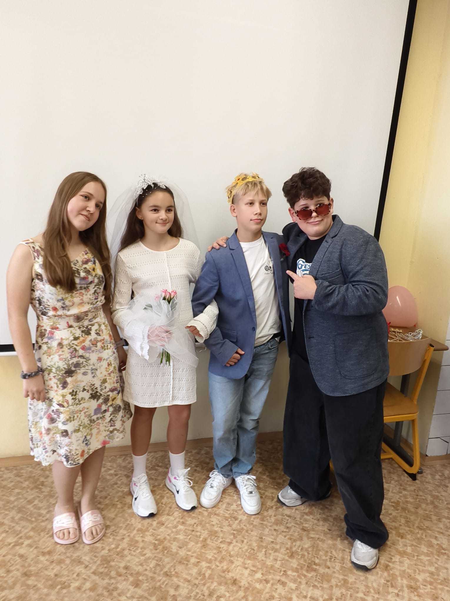 Samozřejmě nechybělo ani svatební oznámení, výzdoba, fotokoutek, hudba, pohoštění a slavnostní přípitek. Žáci mysleli i na tradiční zvyky – gratulace, první tanec novomanželů, proslov rodičů, krájení dortu nebo házení svatební kytice.