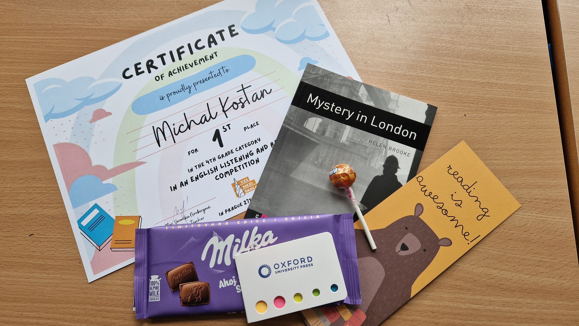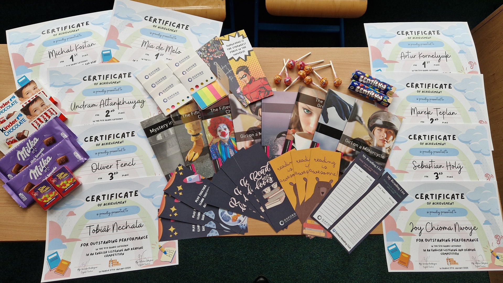 Velké poděkování patří Oxford University Press a Zapsanému spolku Přátelé FZŠ Mezi Školami, kteří věnovali krásné ceny pro vítěze. Děkujeme za podporu výuky angličtiny a za motivaci, kterou žákům dáváte.