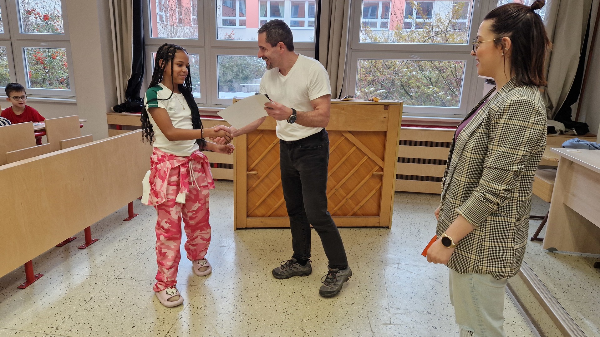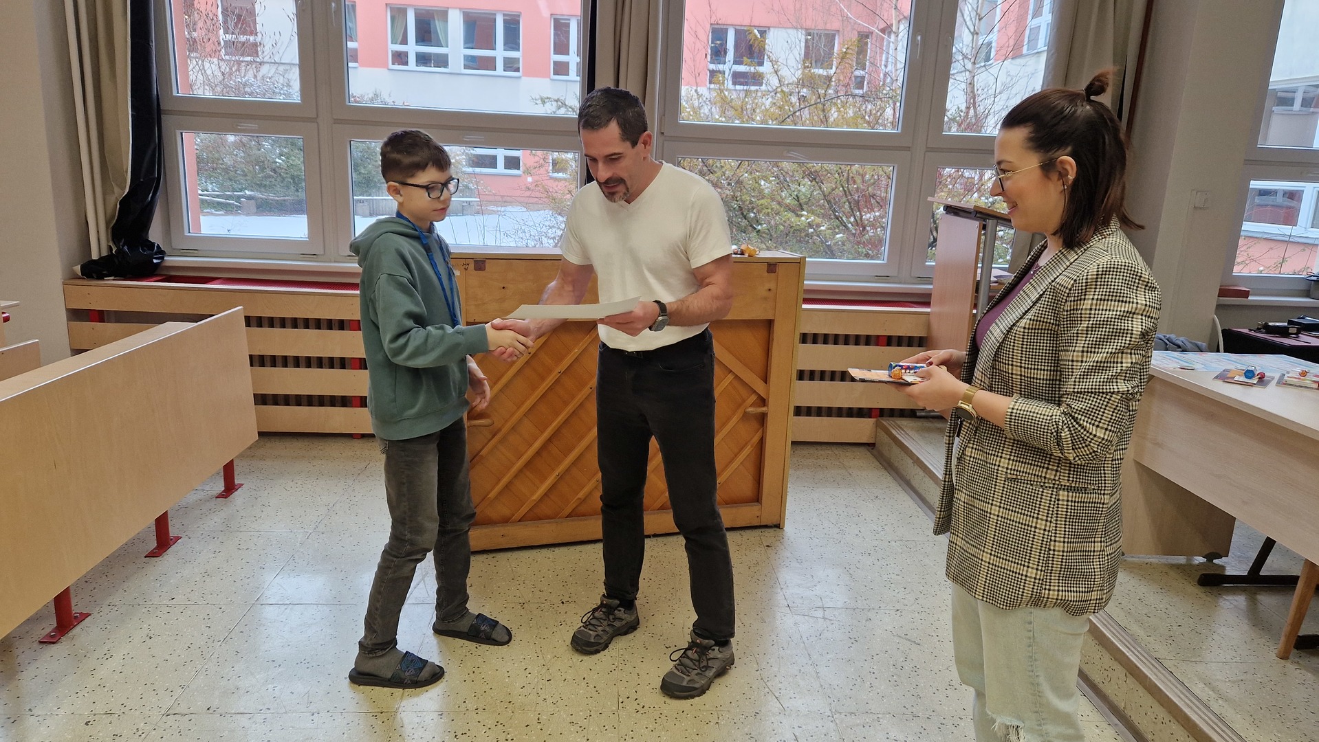 Atmosféra byla velmi přátelská, ale zároveň soutěžní. Přiměřenou vážnost jí dodala také přítomnost pana ředitele na oceňování vítězů, který vyzdvihl především význam cizích jazyků ve vzdělávání a motivoval žáky k učení se dalších jazyků.