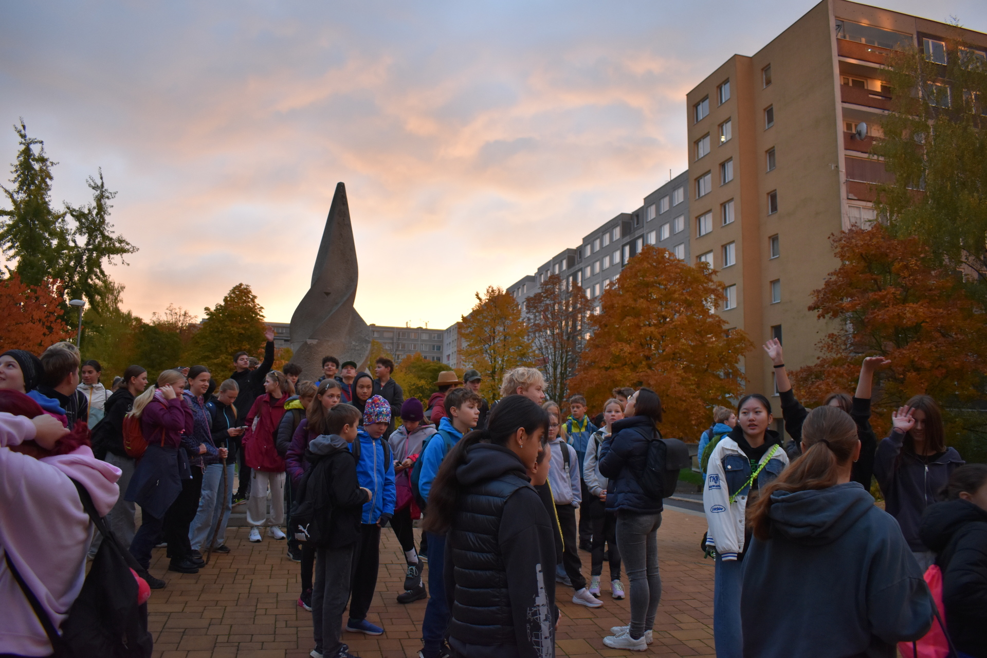 Čtvrteční program nezačal ve škole, protože jsme hned ráno vyrazili do Lidic – obce s tragickým osudem.